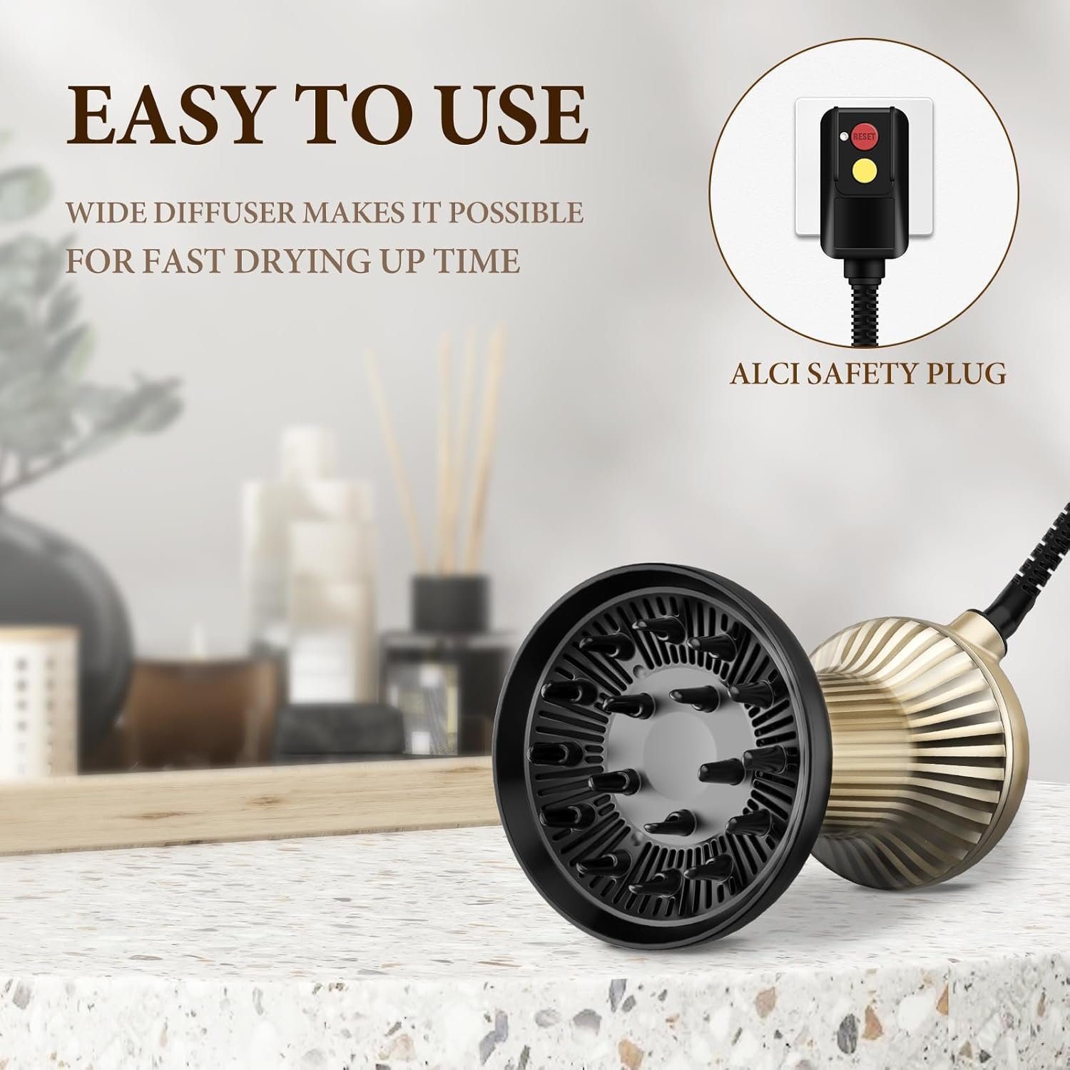 2 in 1 Hair Dryer Diffuser: Say goodbye to the combination of hair dryer and attached diffuser, this hair dryer with locked diffuser, no longer have to worry about an attachment falling off