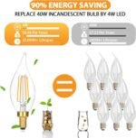 Aesthetic Flame Tip Shape: These candle light bulbs combine a vivid flame tip design with a classic exposed filament to add elegance and charm to your lamp. E12 candle base candelabra bulbs are perfect for chandelier, Sputnik light, pendant, wall sconce lamp, Mason jar ceiling light, ceiling fan, lamp post, and other indoor or outdoor decorative lights