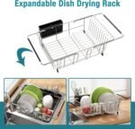 Dish Drying Rack in Sink – Expandable Stainless Steel Dish Drainers for Kitchen Counter, Dish Dryer Rack for Inside Sink, Over The Sink Dish Racks with Utensil Holder, Silver