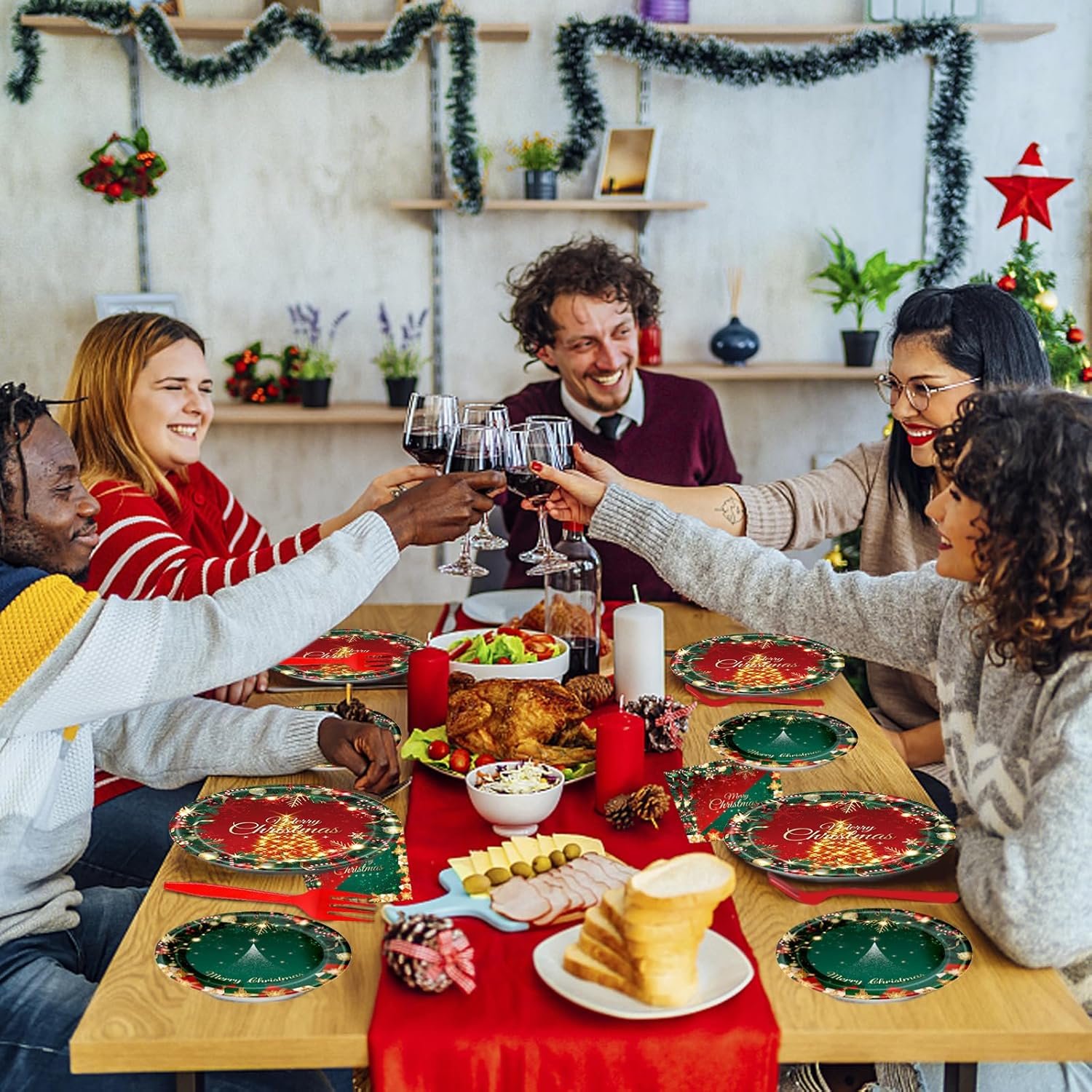 Convenient Christmas Party Plates Set: These Xmas party kits are designed as disposable items, it drastically cuts down on your party prep time. Beautifully party decorations, and make clean-up a breeze, you only need to dispose of them after the party is over, convenient and fast. Make you fall in love with throwing parties!