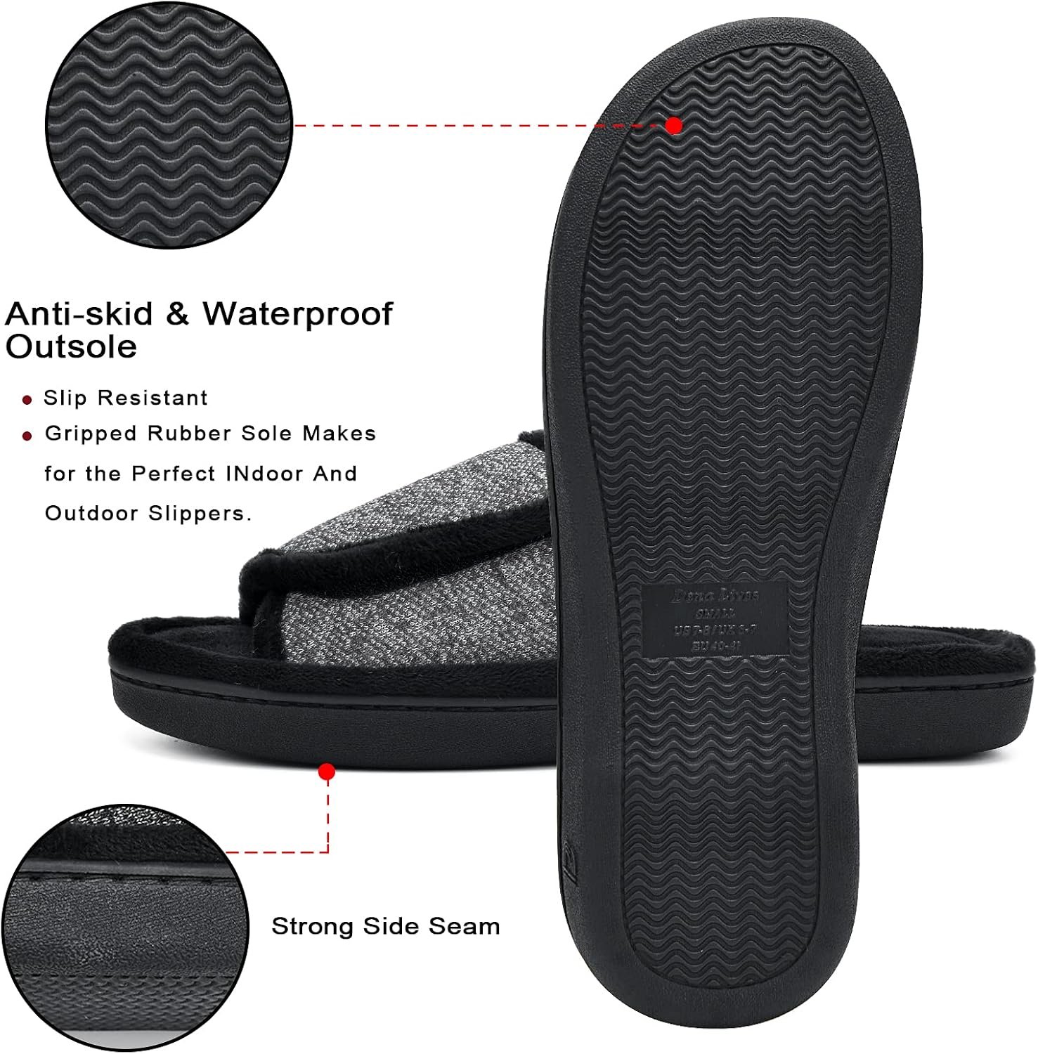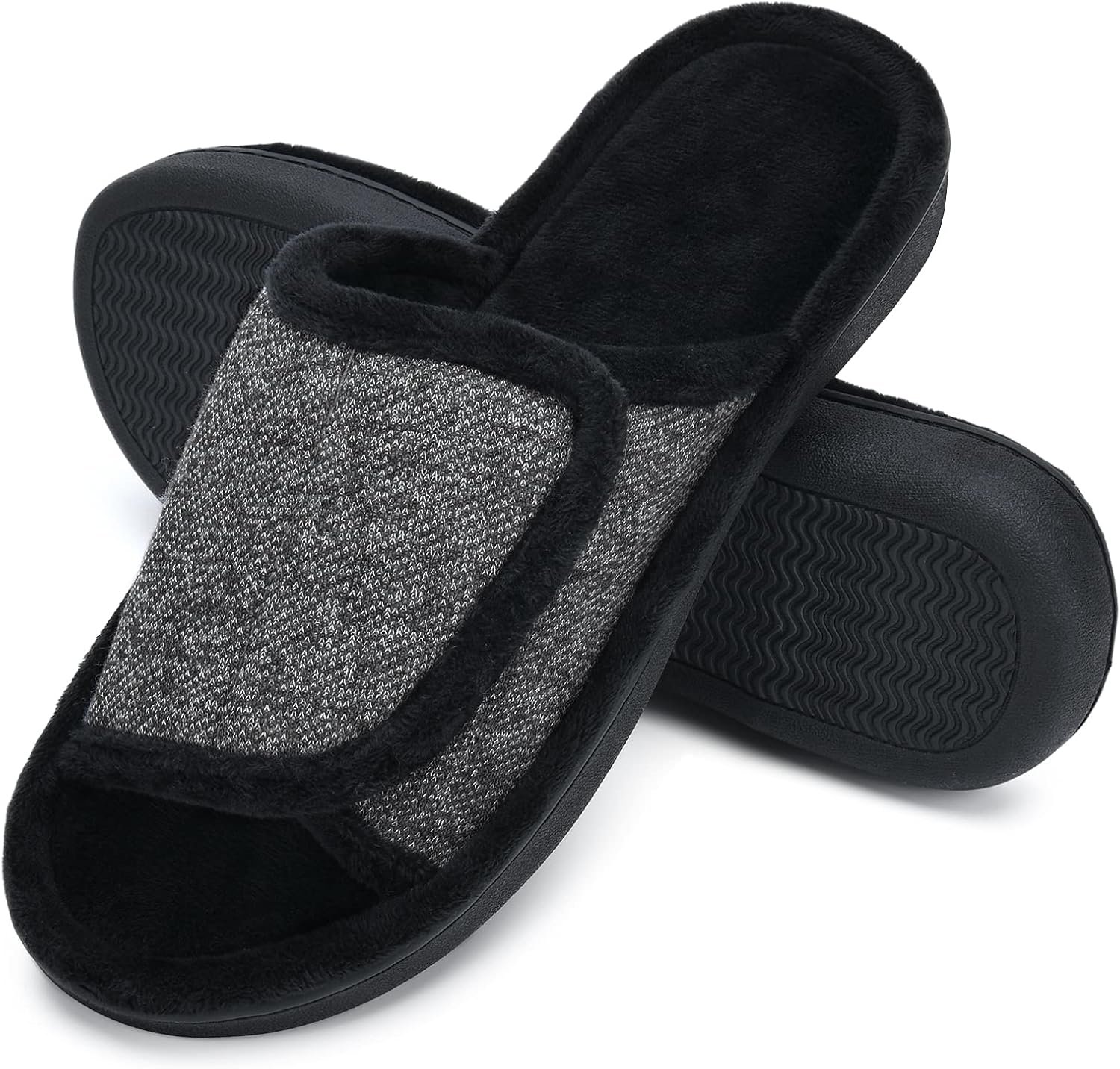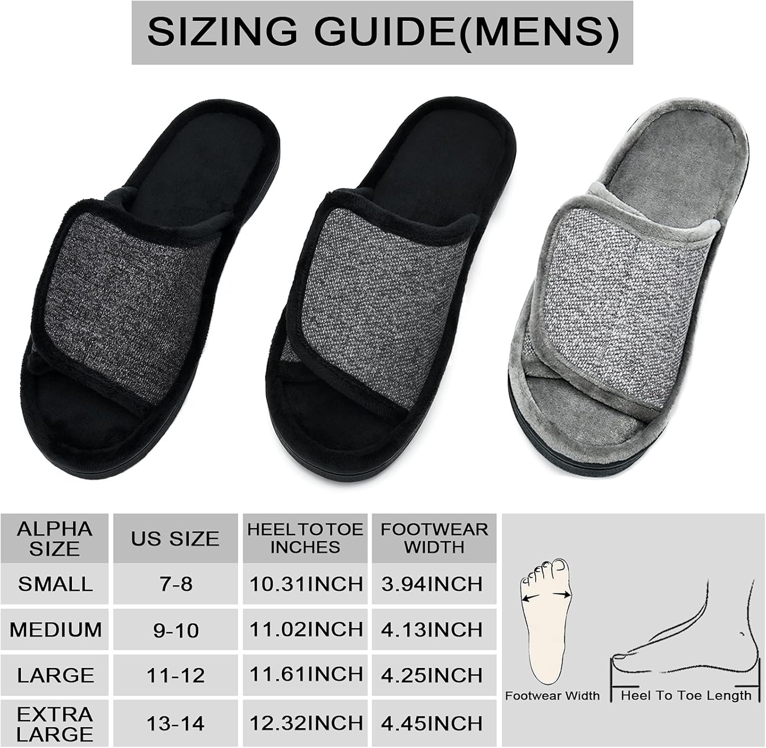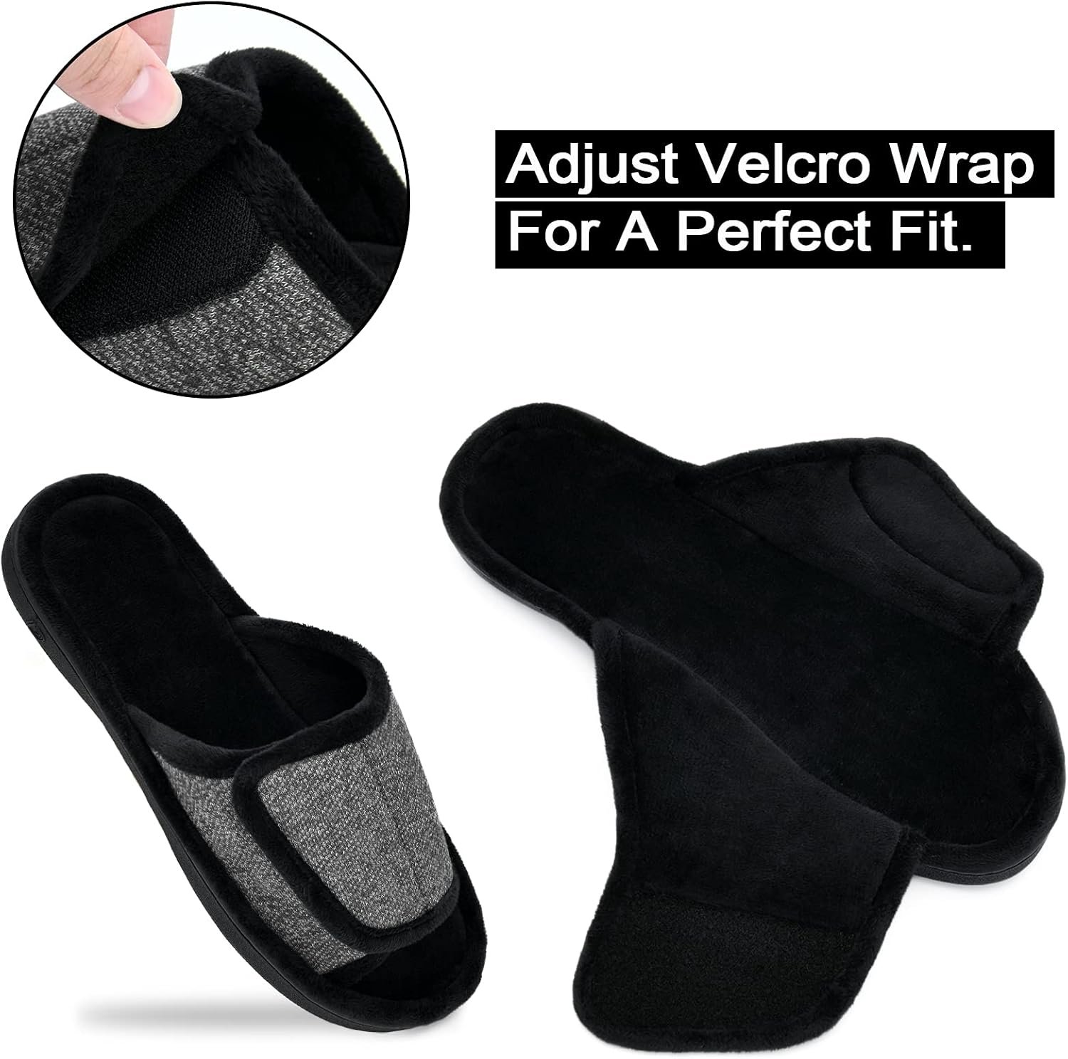 DL Adjustable Men’s Memory Foam Slippers, Comfy Indoor Outdoor, Breathable Slide Bedroom Velcor Slippers Size 7-14 Black, Gray, Navy, Brown
