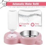 Dog Bowls, Cat Food and Water Bowl Set with Water Dispenser and Stainless Steel Bowl for Cats and Small Dogs – Pink
