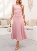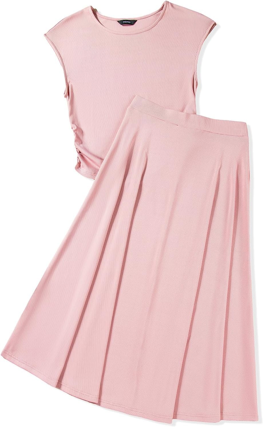 Dokotoo Women’s 2 Piece Summer Outfits Casual Crewneck Short Sleeve Ruched Knit Tops Elastic Waist A-Line Midi Skirt Set