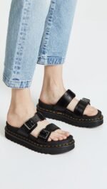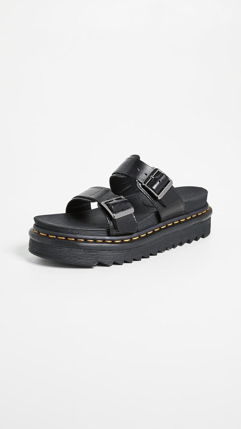With a sturdy, lightweight zig-zag sole, the new Dr. Martens myles sandal is an easy slip-on style built for all-day comfort — plus an extra-chunky platform height.