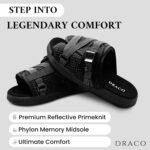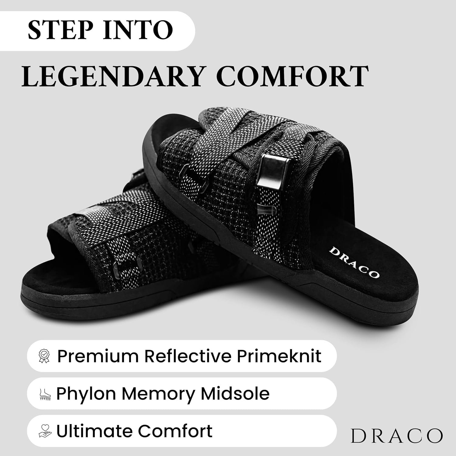 DracoSlides Reflective Slides for Men and Women, Wrapped in Reflective 3M with Adjustable Straps for Wide/Narrow Feet, Sandals with Arch Support & Slip Resistant, Men & Women Footwear, Black