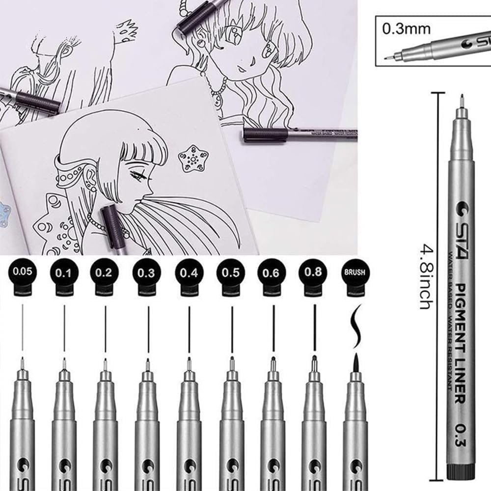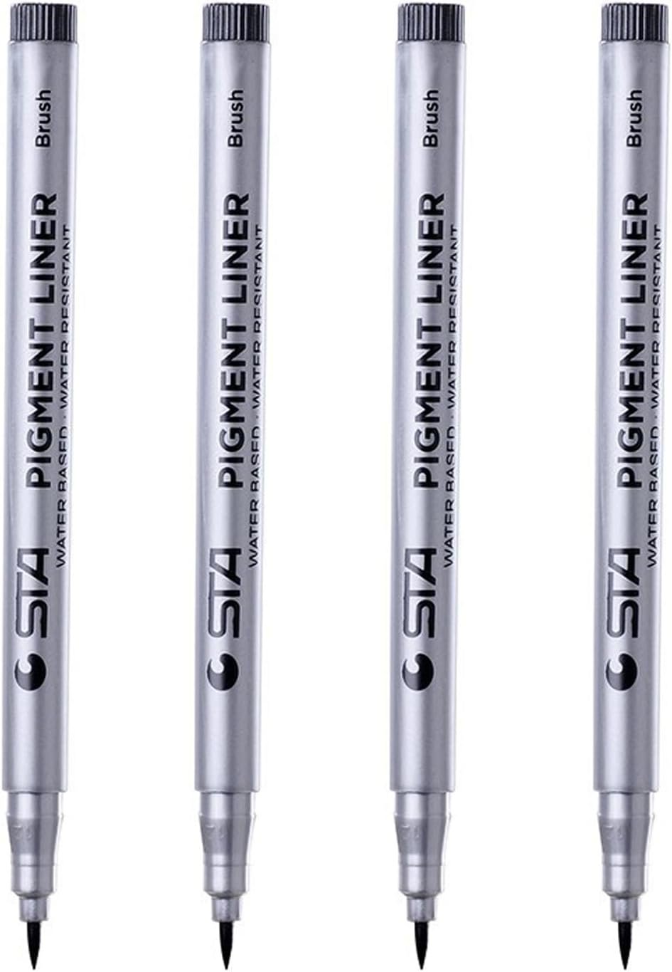 Drawing Pens, Black-4 Pcs, Brush Pens, Micro-Line, Archival Ink Calligraphy Pens, Ideal for Drawing, Sketching, Artist Illustration