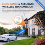 ACCRUATE DETECTION & WIRELESS – 2023 Upgrade Model Driveway alarm sensor has a detection range from 15ft to 26ft (not obstacle).wireless security alarms detection chime influenced of different temperature, humidity, obstacles, motion sensor alarm detection range will fluctuate.It uses upgraded technical components and superior manufacturing techniques to improve the infrared detection chip, reducing false driveway alarms caused by fog/rain/snow/haze/wind/sun glare changes, etc