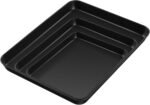 Versatile 3 PIECES baking sheetS: This bakeware combo includes 3 different sizes of baking sheets which designed for daily kitchen use: Large: 16 x 12 x 1 inch, Medium: 12.4 x 9.7 x 1 inch, and Small: 10.4 x 8 x 1 inch, Fits with most regular toaster ovens, Satisfy with various baking needs, such as baking cookies, biscuit, Jelly roll, sheet cake, bacon, vegetable and grilling meat, steak, roasting turkey, Also good to be used as serving tray both for home and commercial use