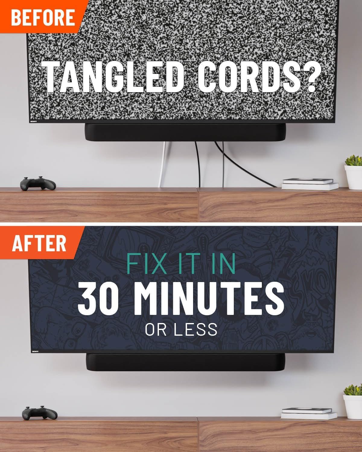 Route power and AV cables behind the wall in just 30 minutes with this easy DIY kit. All you need is a drill and maybe a post-installation beer.