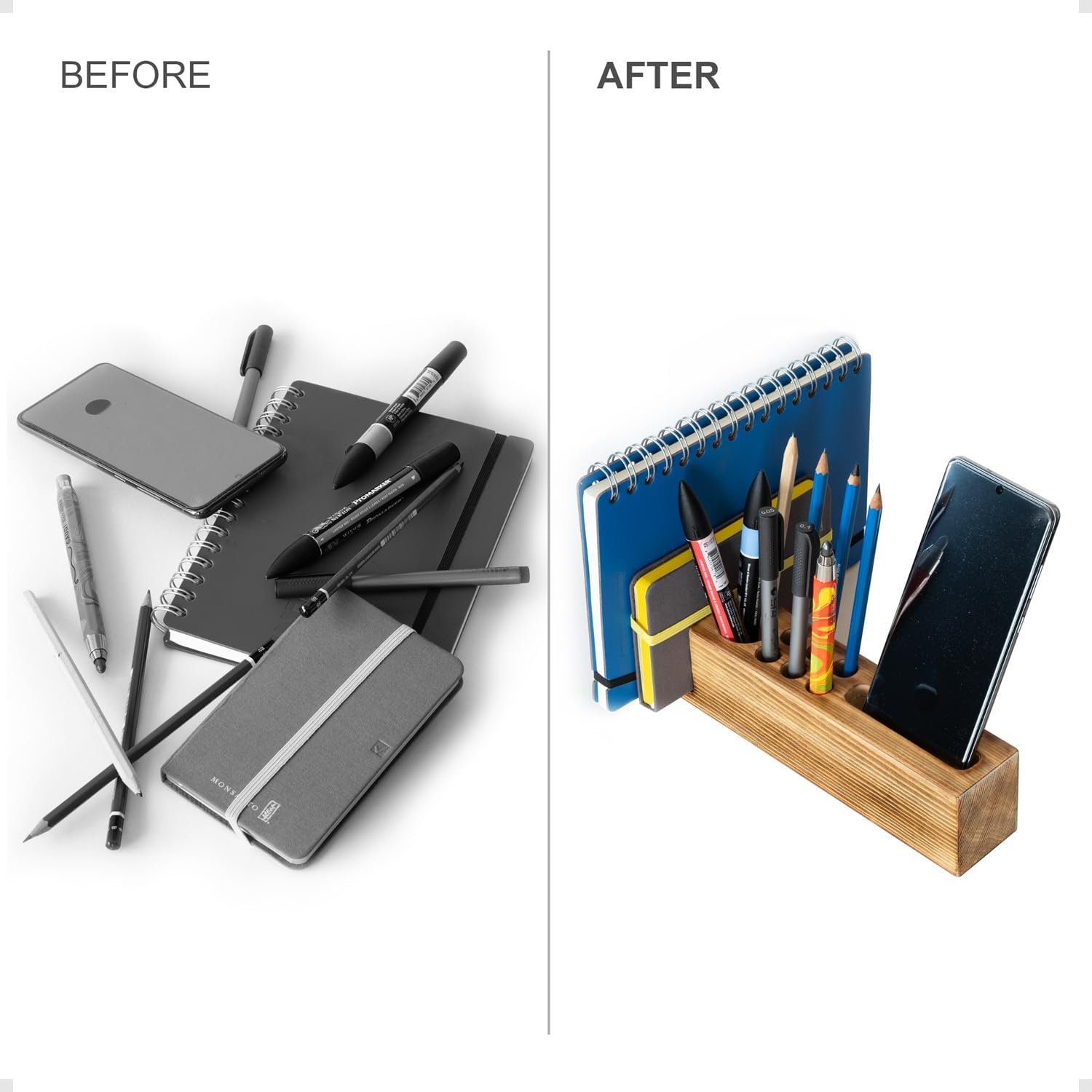 ALL-IN-ONE DESIGN FOR MAXIMUM EFFICIENCY: Declutter your workspace with designated slots for pens, pencils, books, notebooks, and your phone. Stay organized and focused with everything neatly within reach.