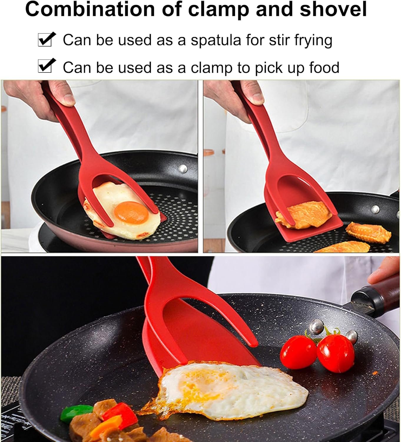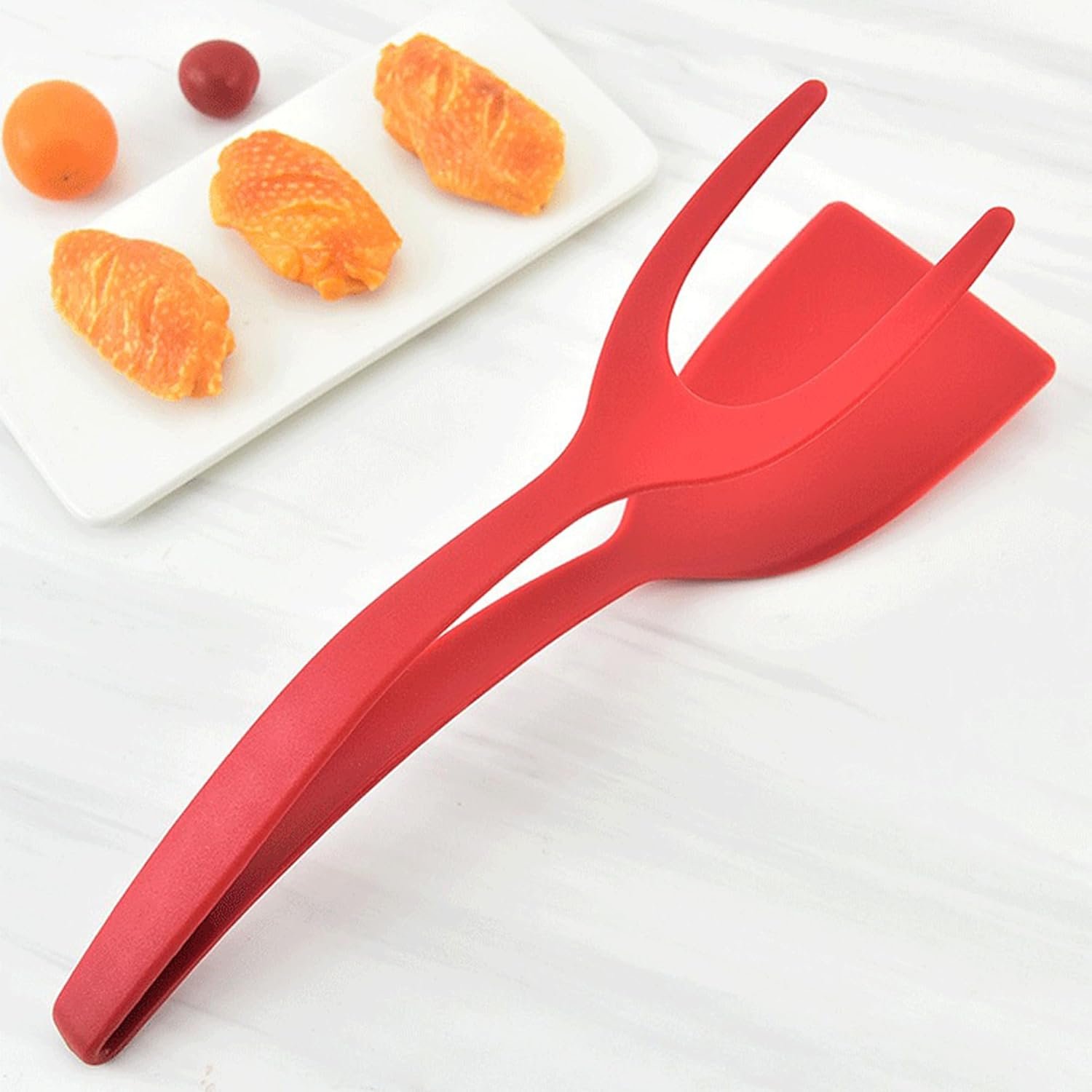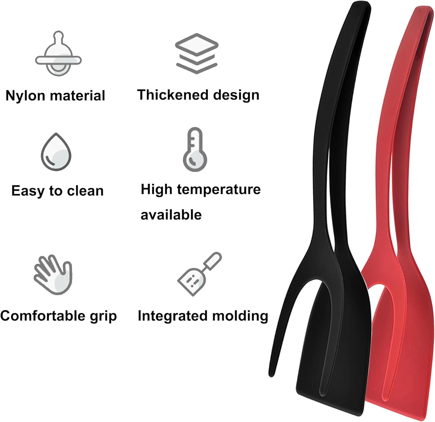 Egg flipper spatula tongs Set of 2 PCS – 2 in 1 Grip and Flip Spatula Tong, Non-Stick Multi-purpose Kitchen Gadgets for Quesadillas, Pancake, Sandwiches, Steak Home Kitchen Cooking Tool(Black,Red)
