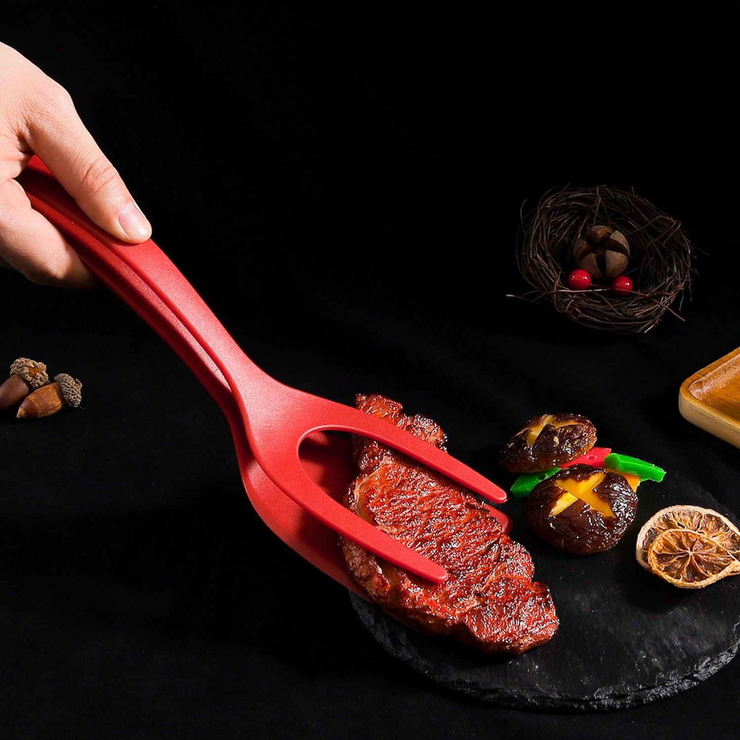 2-in-1 Grip and Flip Spatula Tong – The egg flipper spatula, with its thin and flexible food-grade high-temperature resistant nylon head and angled edge, smoothly glides beneath food, keeping it intact. Master the art of egg spatula flipping with ease!