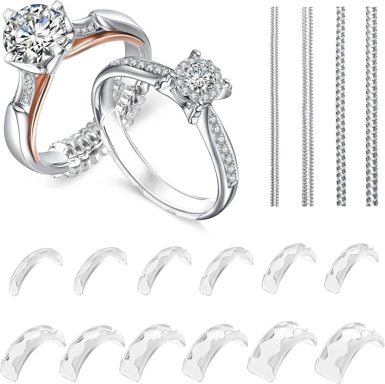 Eiito Ring Sizers for Loose Rings, Make Ring 0.5-1 Size Smaller Without Resizing, 16 Pack Invisible Rings Adjuster Guards Spacer for Men and Women, 2 Styles Insert and Spiral