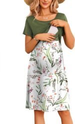 Ekouaer Women’s Nursing Dress Summer Short Sleeve Patchwork Maternity Breastfeeding Knee Length Dress