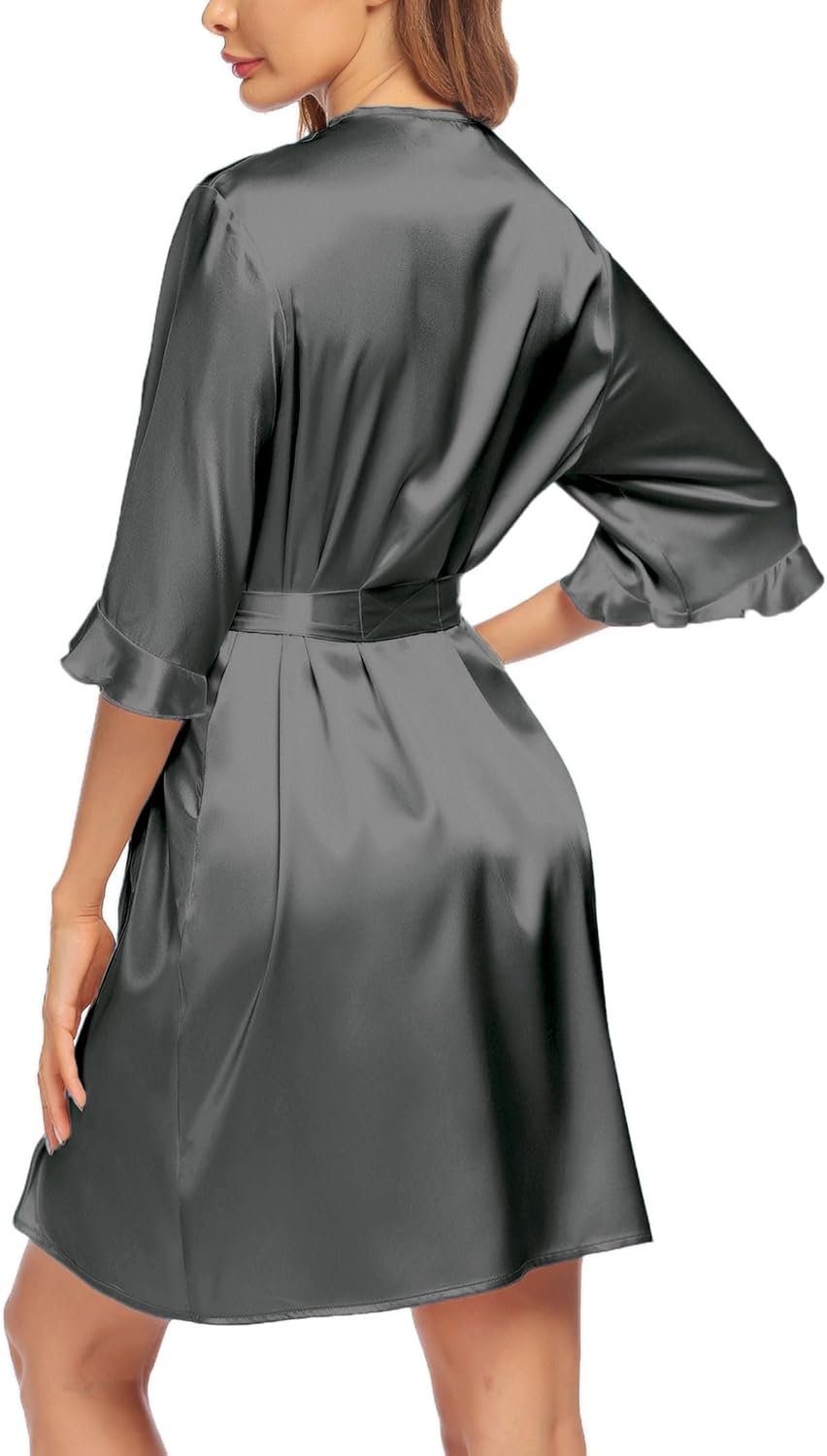 Women Kimono Bathrobe Short Ruffle Belted Robes Bridesmaids Sleepwear