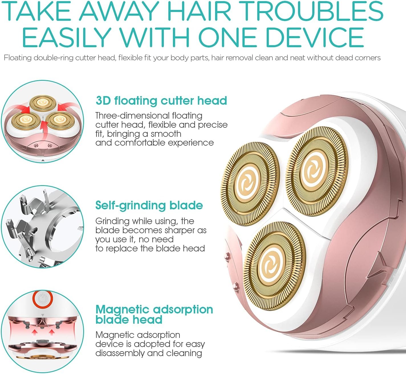 Electric Shaver for Women 3D Floating Blade Rotary Razor Hair Remover for Arms, Legs and Underarms Rechargeable Portable and Safe Wet and Dry Use ES300