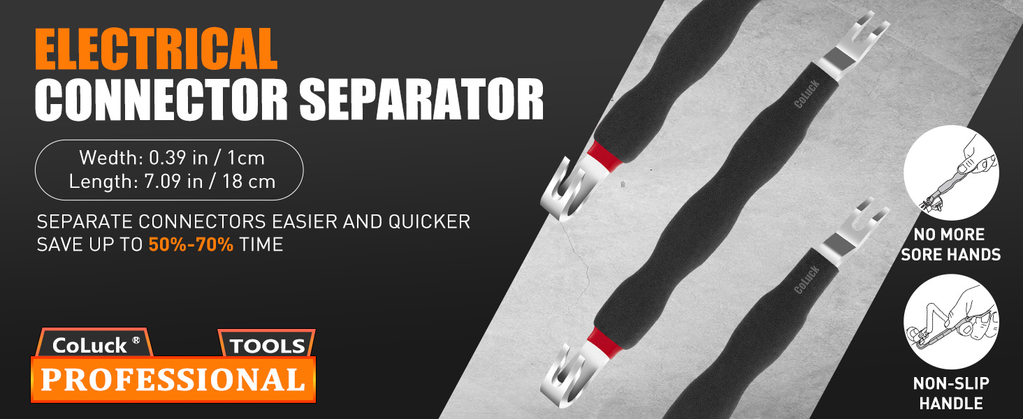 Electrical Connector Separator Tool -This electrical connector separator tool disconnect electrical connectors on your wiring harnesses without damaging them. Coluck connector separator tool is about 18cm/7.1″ long and comes with a no-slip handle and 2 different style angles on the tips to make access easier depending on the electrical connector. Coluck terminal electrical separator tool connector removal tool will work on all Jeeps, SUVs, trucks, and cars of all makes, models, and years.