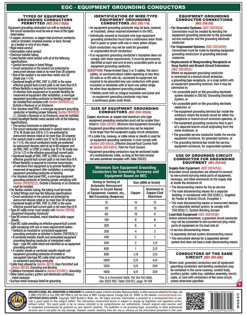 In this unique quick-reference guide, a single, 6-page laminated card, you get the essentials that you need to know regarding Electrical Grounding & Bonding based on the current 2023 NEC.