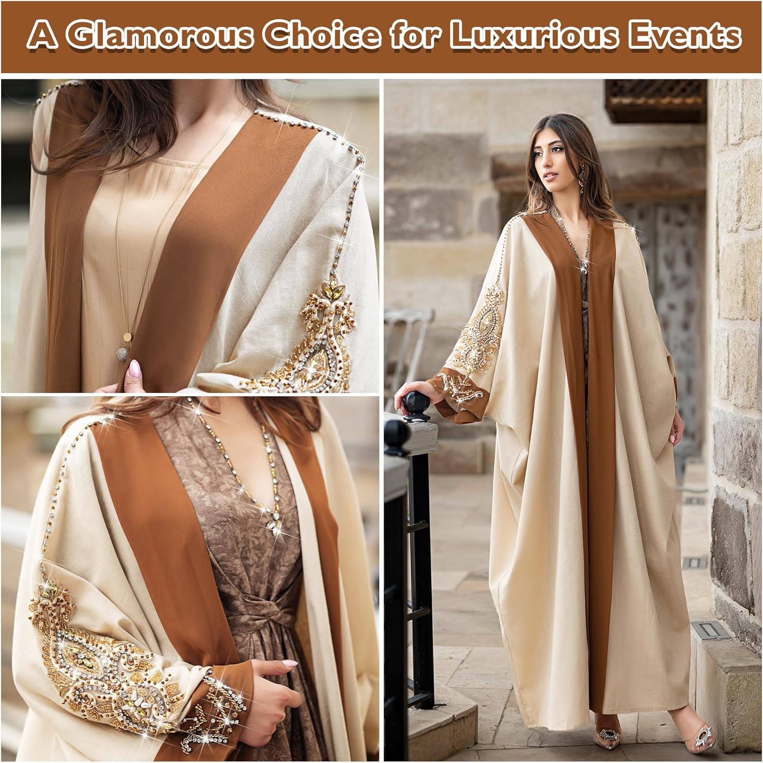 Be the first to review “Elegant Khaki 1PC Muslim Abaya Dress for Women with Hand-Sewn Rhinestone Sleeves, Lightweight Long Sleeve Cover-Up Abayas for Women, Perfect for Ramadan, Eid, and Casual Wear Islamic Dresses”