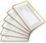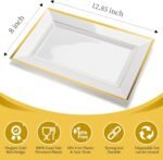 ELEGANCE, STYLE & EASE FOR YOUR SPECIAL OCCASION – Our pack of 6, white and double gold rimmed plastic serving trays and serving platters provide a touch of effortless sophistication to any occasion! Make your food look fancy on the table while avoiding the hassle of clearing up! (Dimensions – 12.85 x 8 inches)