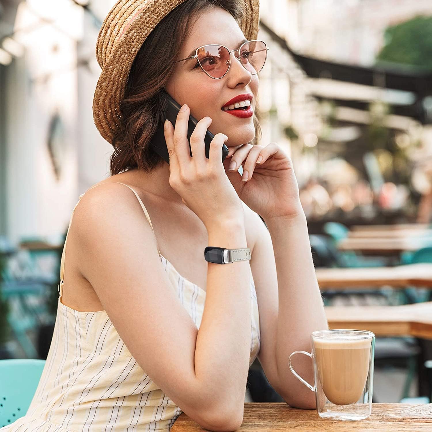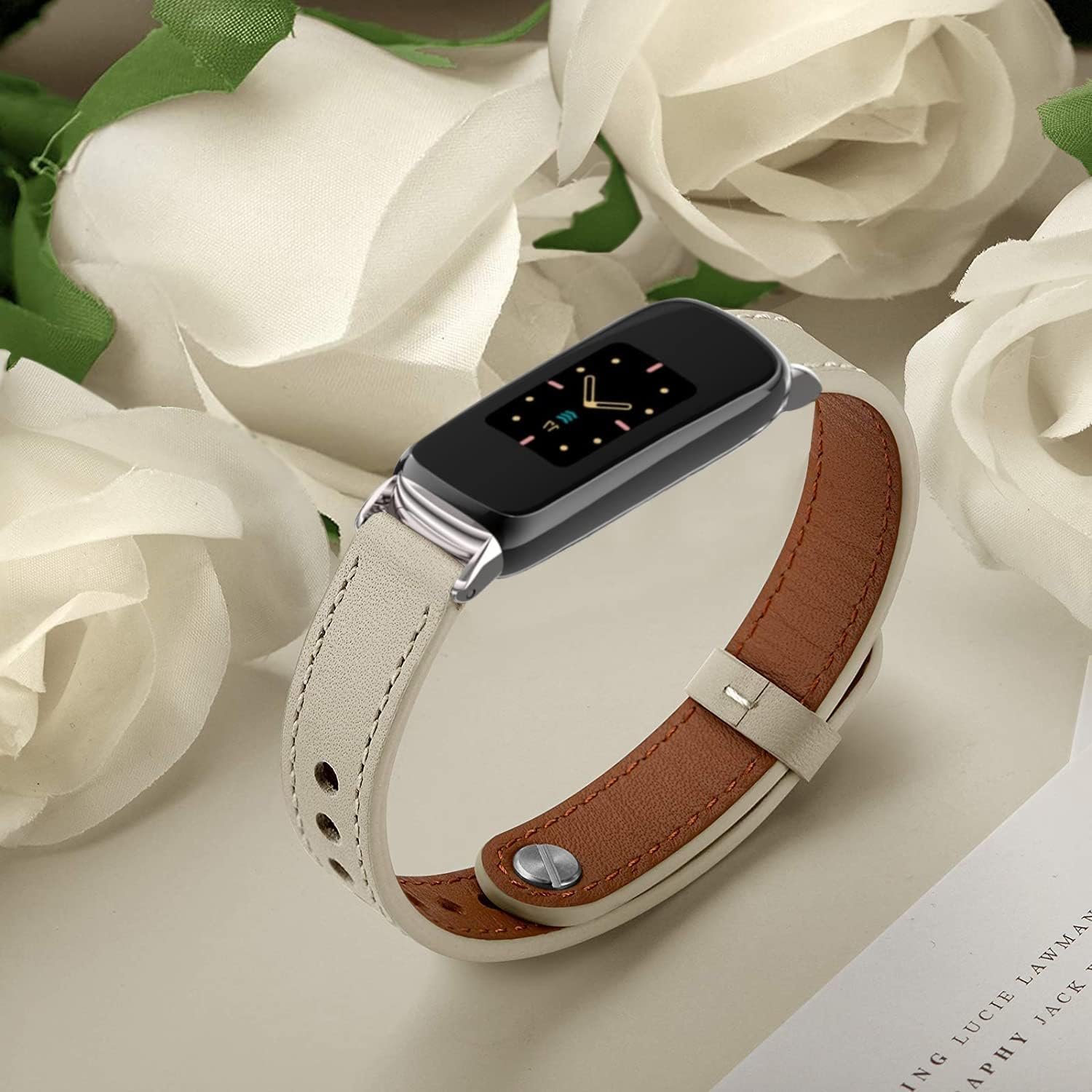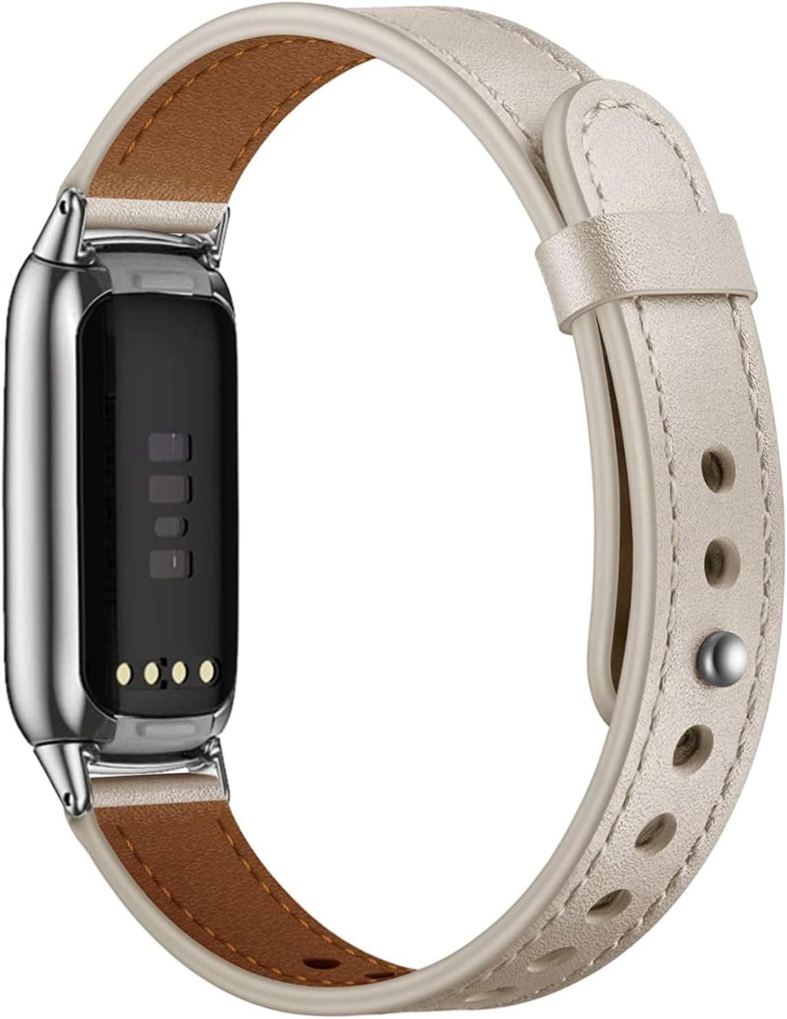 [Quality Materials] This leather wristband for Fitbit Luxe Fitness and Wellness Tracker is made of high quality genuine leather with sturdy stainless steel buckle. The material is skin-friendly, lightweight, breathable and durable. It will make you wear more comfortable on your wrist. Also, it is easy to clean.