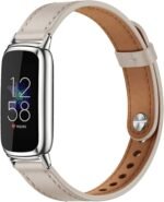 Elegant Slim Leather Bands Compatible for Fitbit Luxe Watch Band,Strap Wristband, Soft Bracelet Replacement for Fitbit Luxe Fitness and Wellness Tracker Women(Beige Silver)