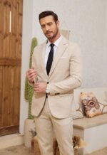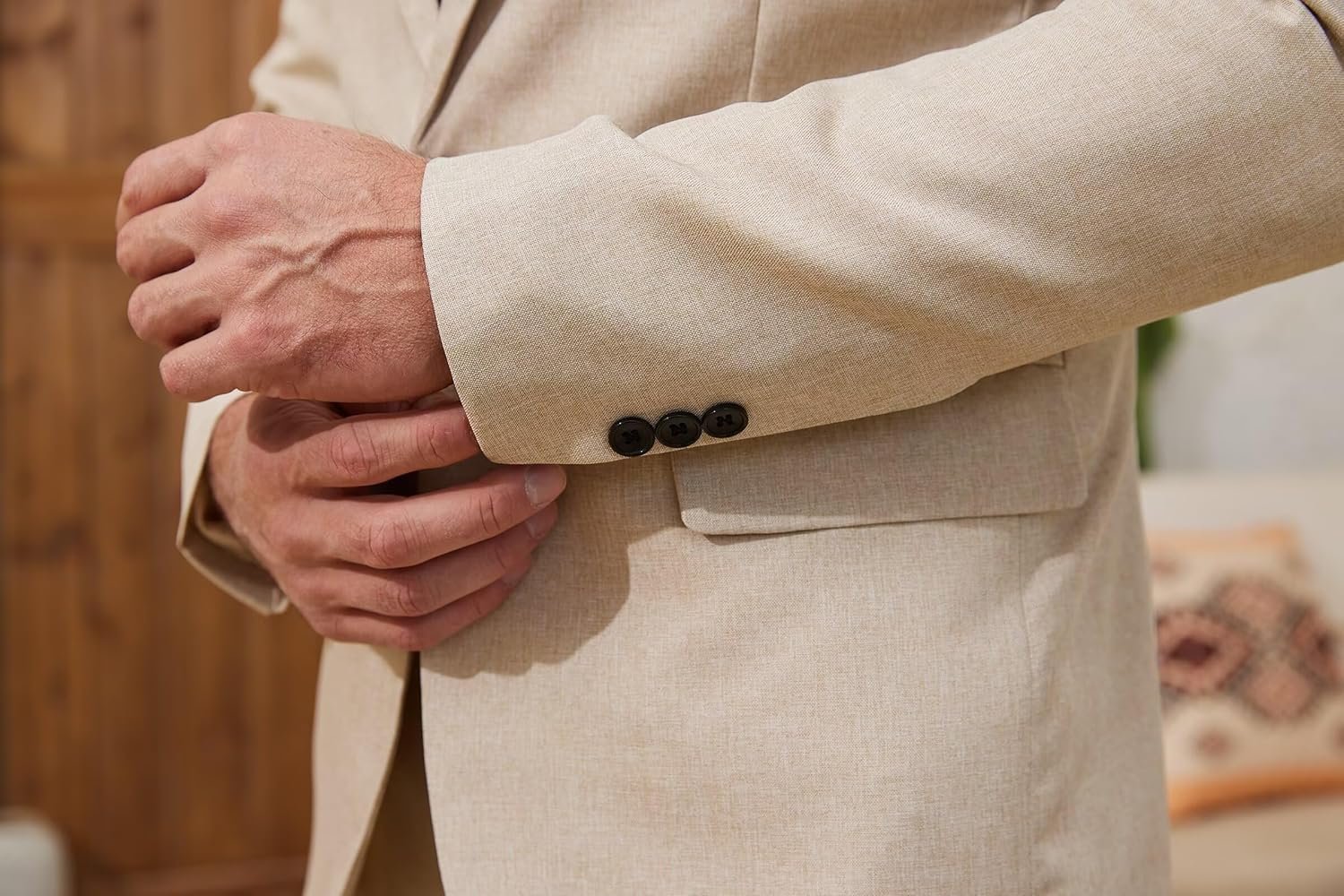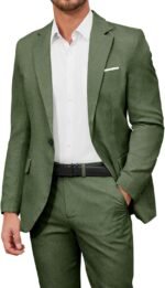 EMERAIDVLN Men’s 2 Piece Suits Slim Fit Casual Lightweight Suit Set 2 Button Linen Textured Blazer Suit Jacket Pants Set