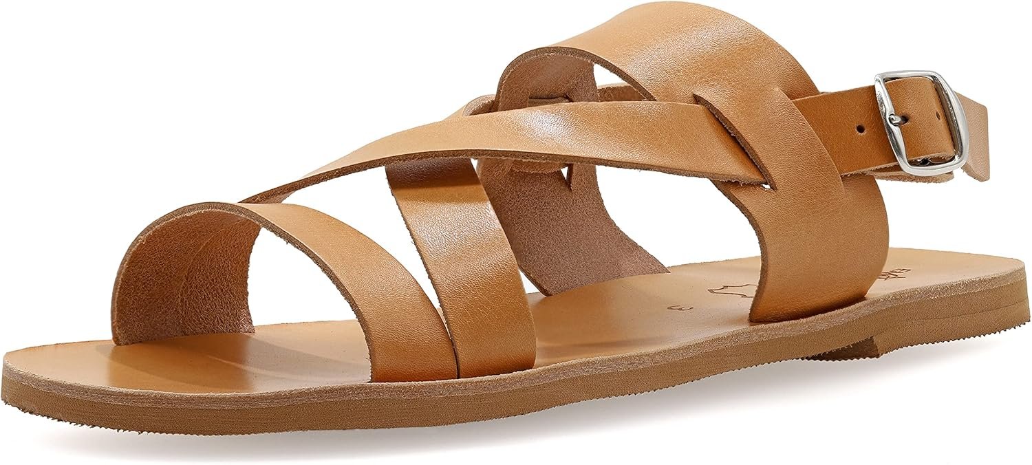 Emmanuela Ancient Greek Style Leather Fisherman Sandals for Men, Handmade Leather Open Toe Men’s Sandals, Quality Adjustable Buckle Summer Shoes Black, Brown, Beige