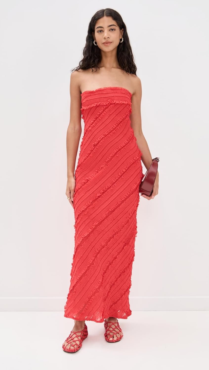 endless rose Women’s Strapless Ruffled Maxi Dress