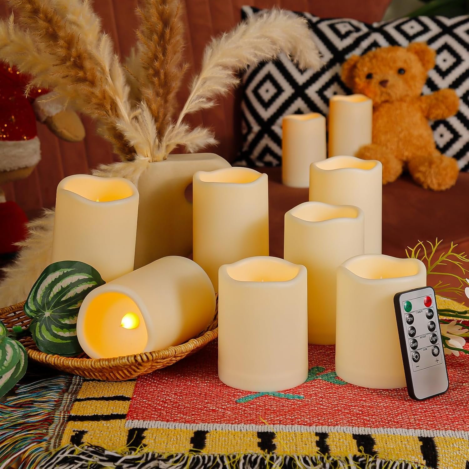 ENERGY SAVING, POWERFUL LEDS: This value package comes with nine flameless candles, two remote control and one user manual. It is powered by 2 AA batteries (not included) per flameless candle.