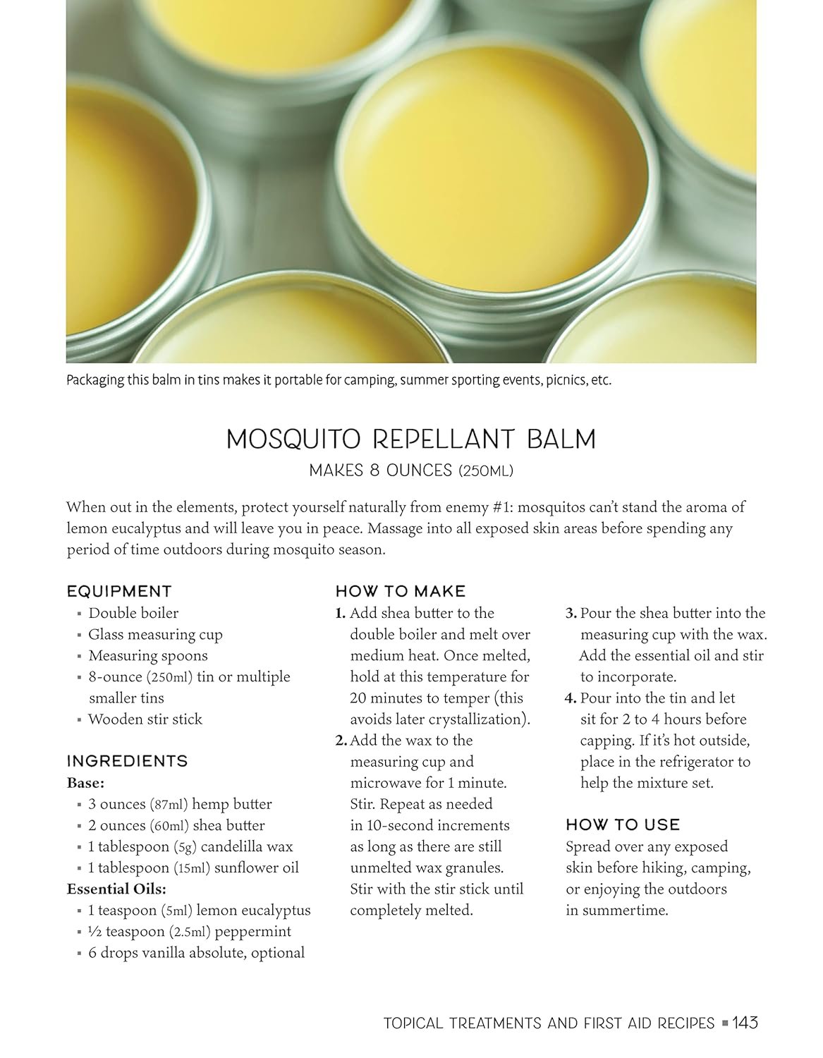 From all-natural homemade face scrubs, dryer sheets, and laundry detergent to homemade candles, immunity boosters, medicinal balms for headaches, stings, itches, men’s health, women’s health, and so much more, each recipe includes clear, step-by-step instructions and tips for personalization. Also included are helpful tables for which essential oils to start with, including peppermint, lavender, ylang ylang, and more, plus other need-to-have ingredients, from coconut oil and jojoba to sea salt, castile soap, candelilla wax, and other supplies.