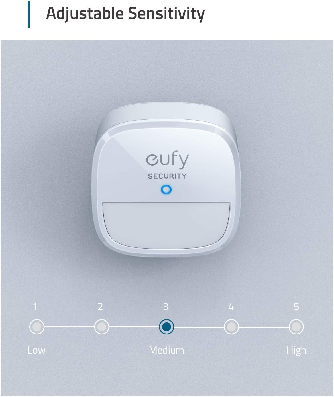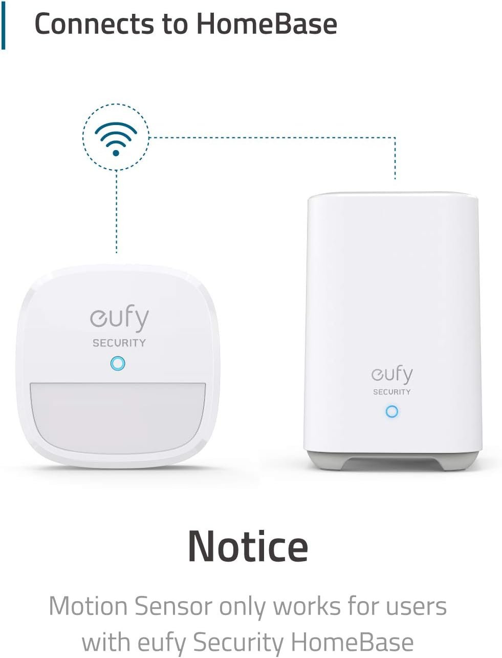 eufy Security Motion Sensor, Home Alarm System, 100° Coverage, 30 ft Detection Range, 2-Year Battery Life, Adjustable Sensitivity, HomeBase Required, Optional 24/7 Protection Service, Home Security