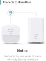 Customers find the motion sensor works well with their eufy security system and covers rooms effectively, with one customer noting it’s particularly good at covering blind spots. The device is easy to install, with one mentioning it can be mounted using screws or peel-and-stick tape, and customers appreciate that it doesn’t require a monthly subscription fee. While some customers report excellent battery life, others experience poor performance, and there are concerns about constant false alarms. Compatibility is problematic, with customers reporting issues pairing it with HomeBase.