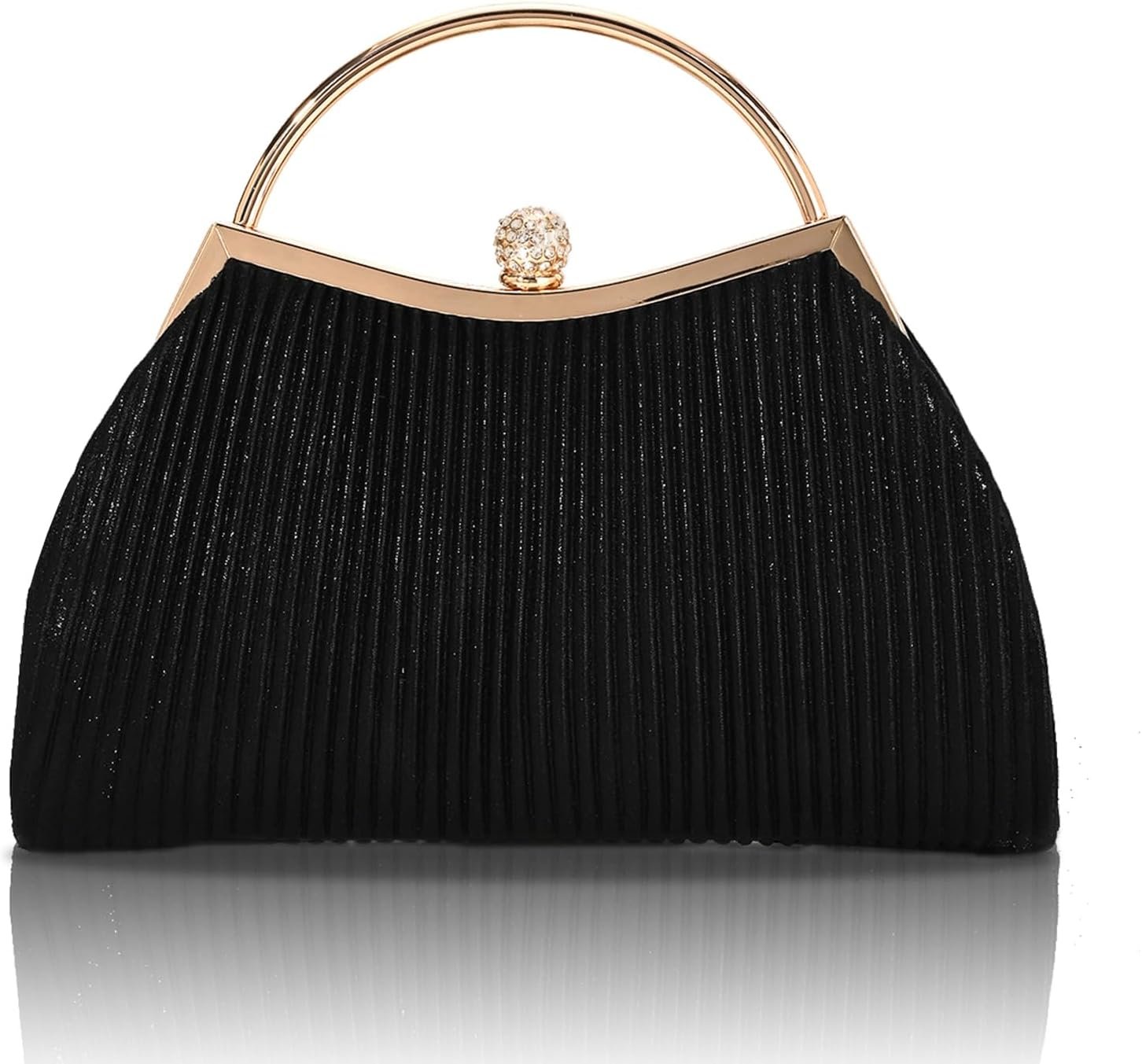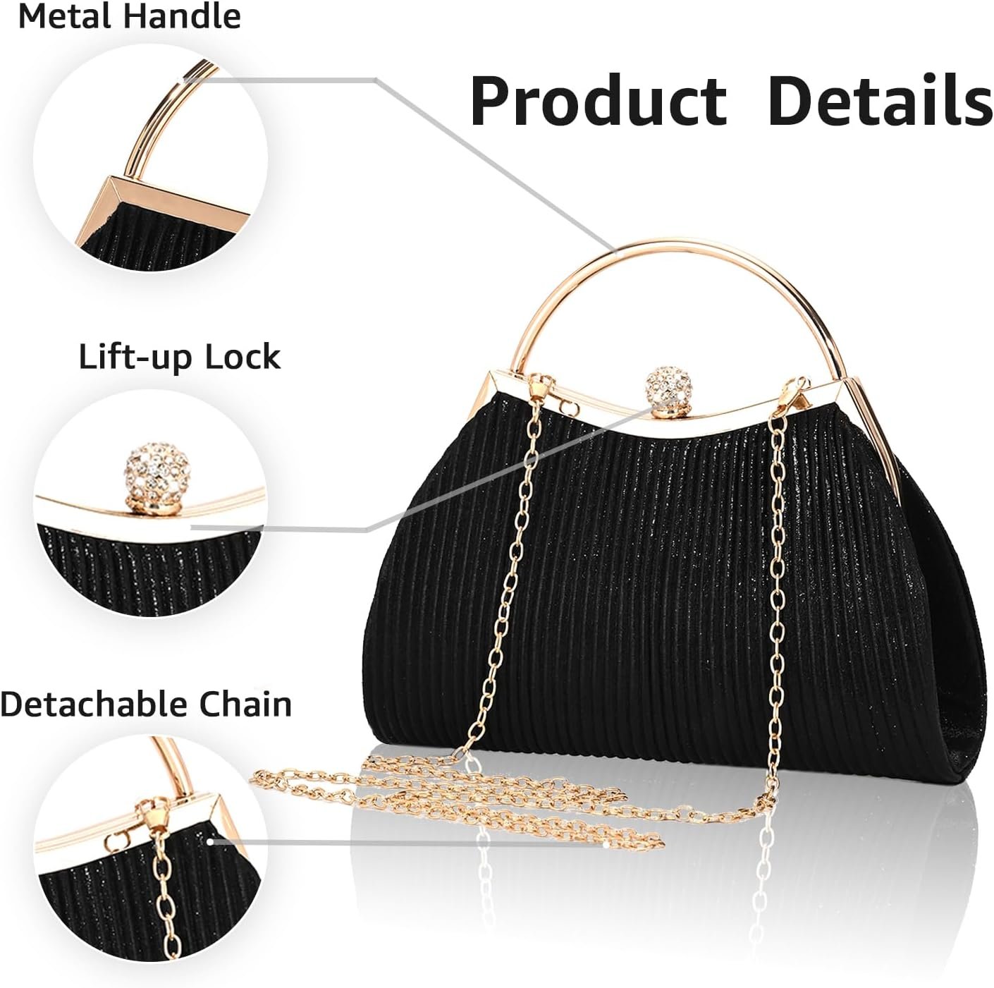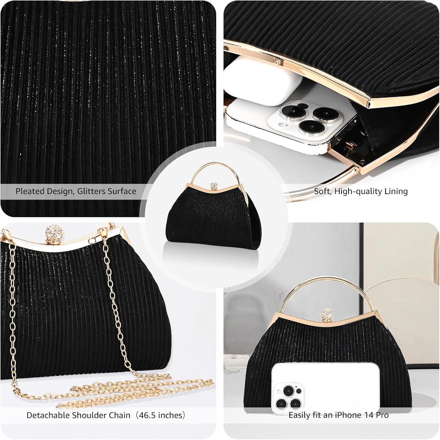 Evening Bag for Women Sparkly Handbag with Chain, Women’s Shoulder Bag Pleated Clutch Purse for Wedding, Prom, Party