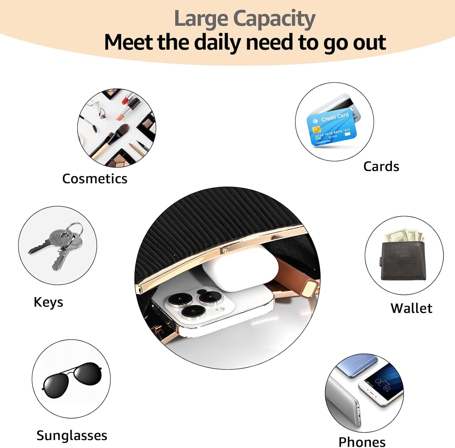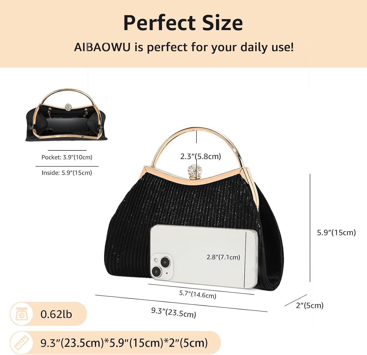 Customers appreciate the handbag’s elegance, quality, and size. They find it pretty, classy, and versatile with the right amount of sparkle. Many say it’s a nice size for an evening bag and great for weddings and evening events. The small chic handle is also appreciated. Customers find it well-priced and happy with the storage capacity.