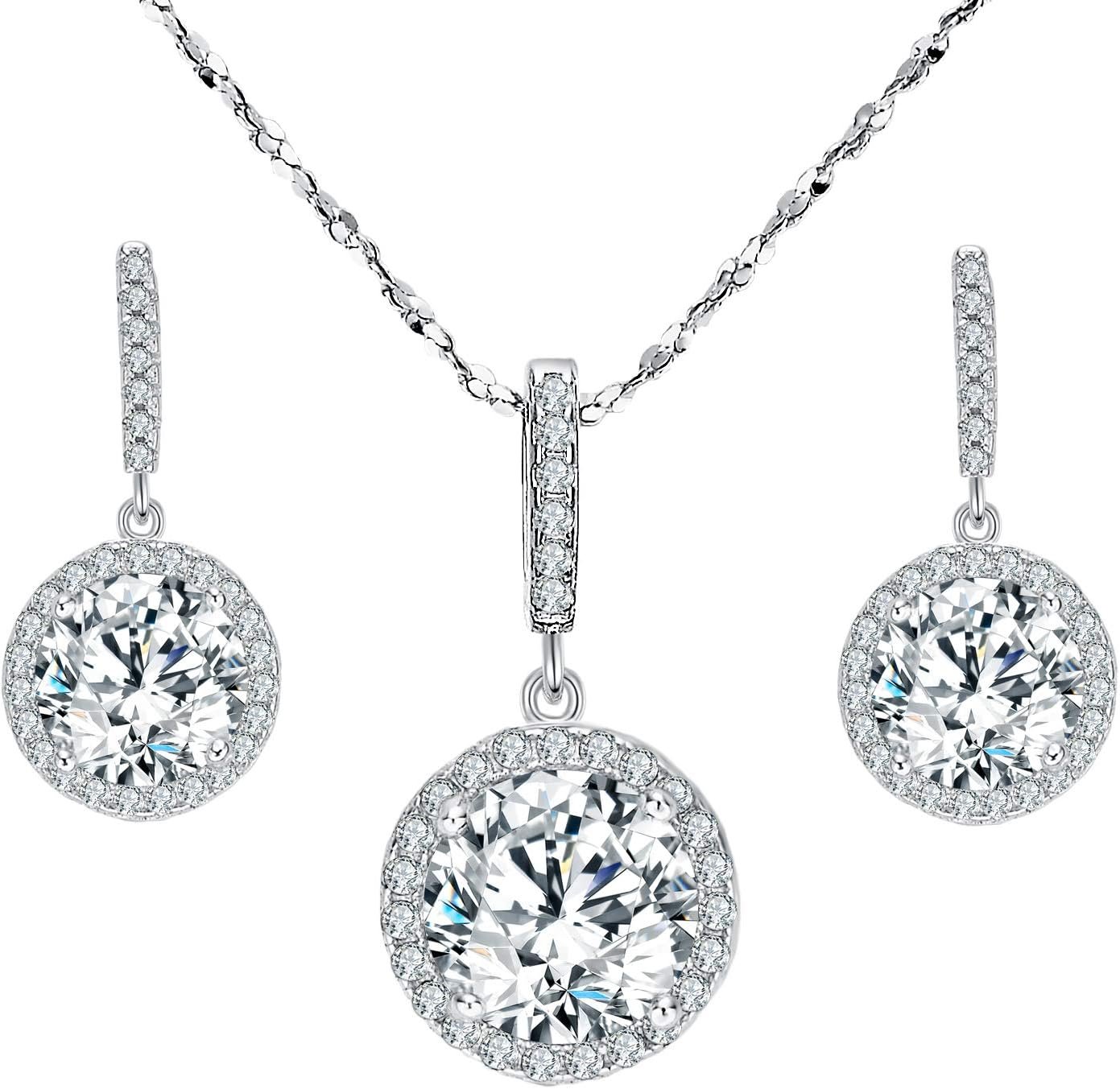 EVER FAITH 925 Sterling Silver CZ Gorgeous Round Cut Wedding Pendant Necklace Earrings Set for Women