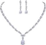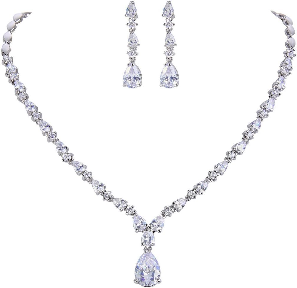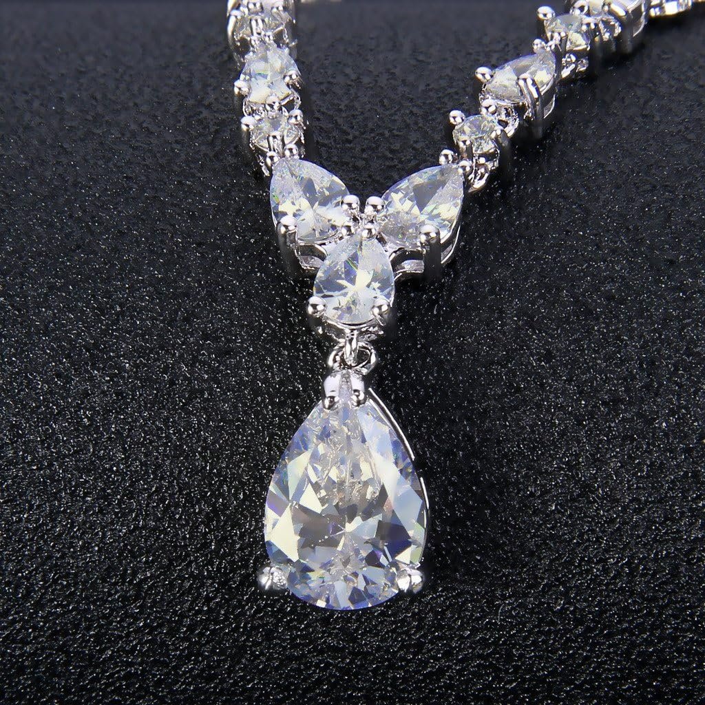 EVER FAITH Gorgeous Cubic Zirconia Charming Water Drop Bridal Bride Necklace Earrings Set Silver-Tone