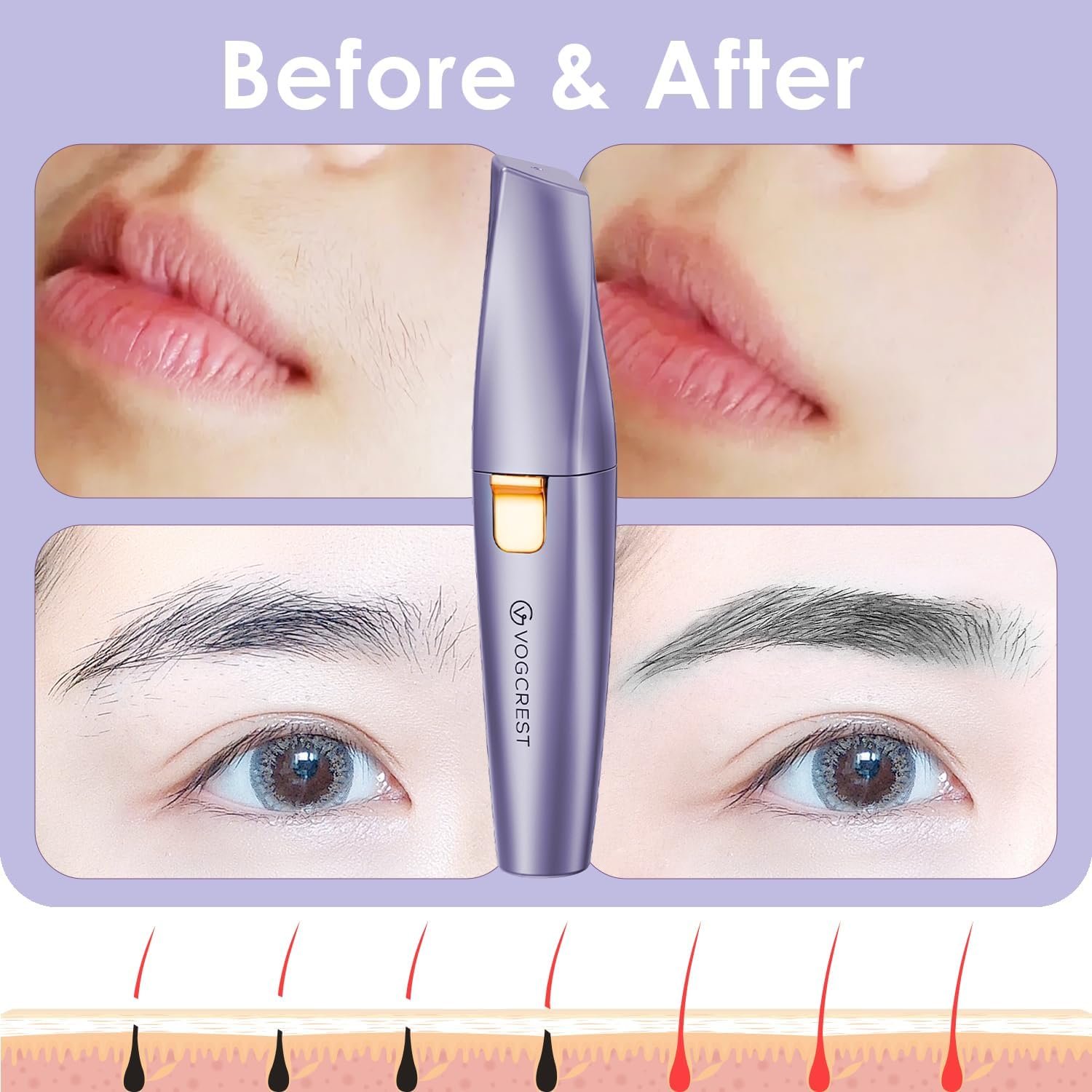 GENTLE & PAINLESS: The 2-1 women’s hair remover is suitable for daily use to keep up with hair regrowth and leave it smooth, specially designed for use on eyebrows, upper and lower lip, cheeks, chin, and neck. Works on peach fuzz or fine hair. Go slow with circular movements and it will do the job.
