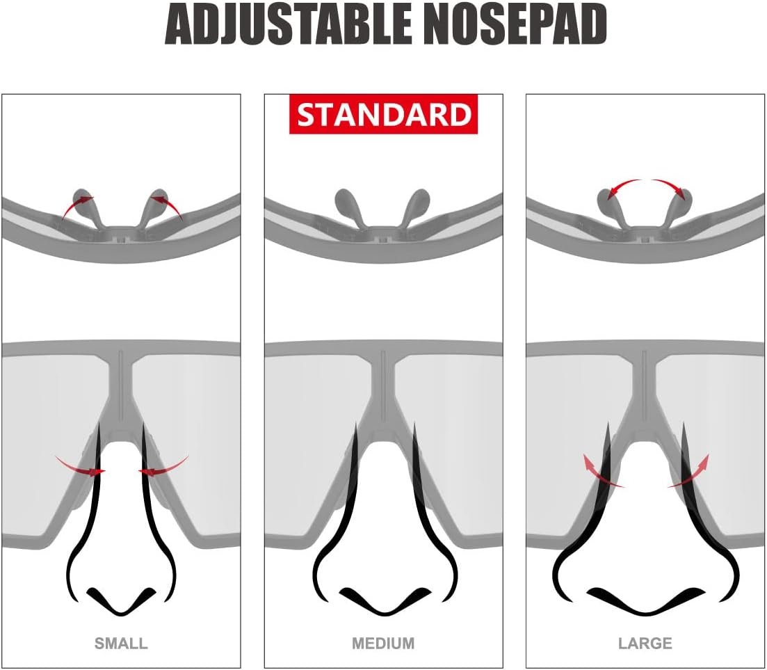 【High Fashion Athleisure Style with Adjustable Nose for a Comfy Fit 】Crafted from flexible, lightweight TR90, this durable frame offers all-day comfort with adjustable nose pads and ergonomic design. The big eye coverage and stylish athleisure look ensure you stay protected, effortlessly stand out from the crowd, making it the perfect gift for sports and water sports enthusiasts. Please refer to our size range images for the perfect fit.