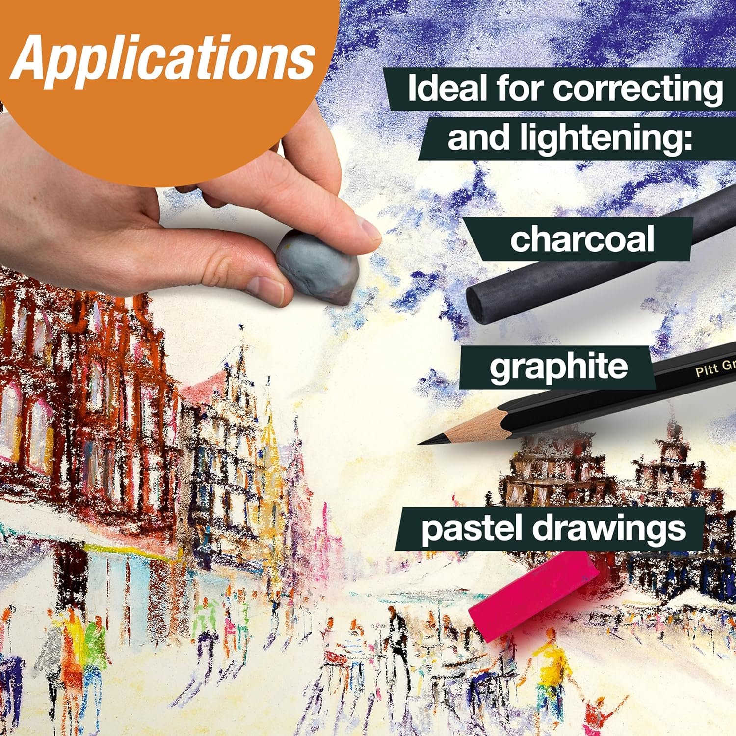 VERSATILE ART ERASER: Perfect kneaded eraser for artists when correcting and lightening charcoal, graphite and pastel drawings. Art Eraser is ideal for cleaning acetate films, slides and layouts and great for students studying drawing and sketching