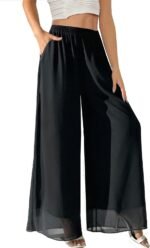 Be the first to review “Fakanhui Women’s Chiffon Wide Leg Palazzo Pants High Elastic Waist Casual Flowy Business Trousers”