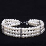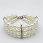 Fancy 3 Row Pearls Diamond Dog Necklace Collar Jewelry with Bling Rhinestones for Pets Cats Small Dogs Girl Teacup Chihuahua Yorkie Clothes Costume Outfits (White, Neck Size: 8″-10″)