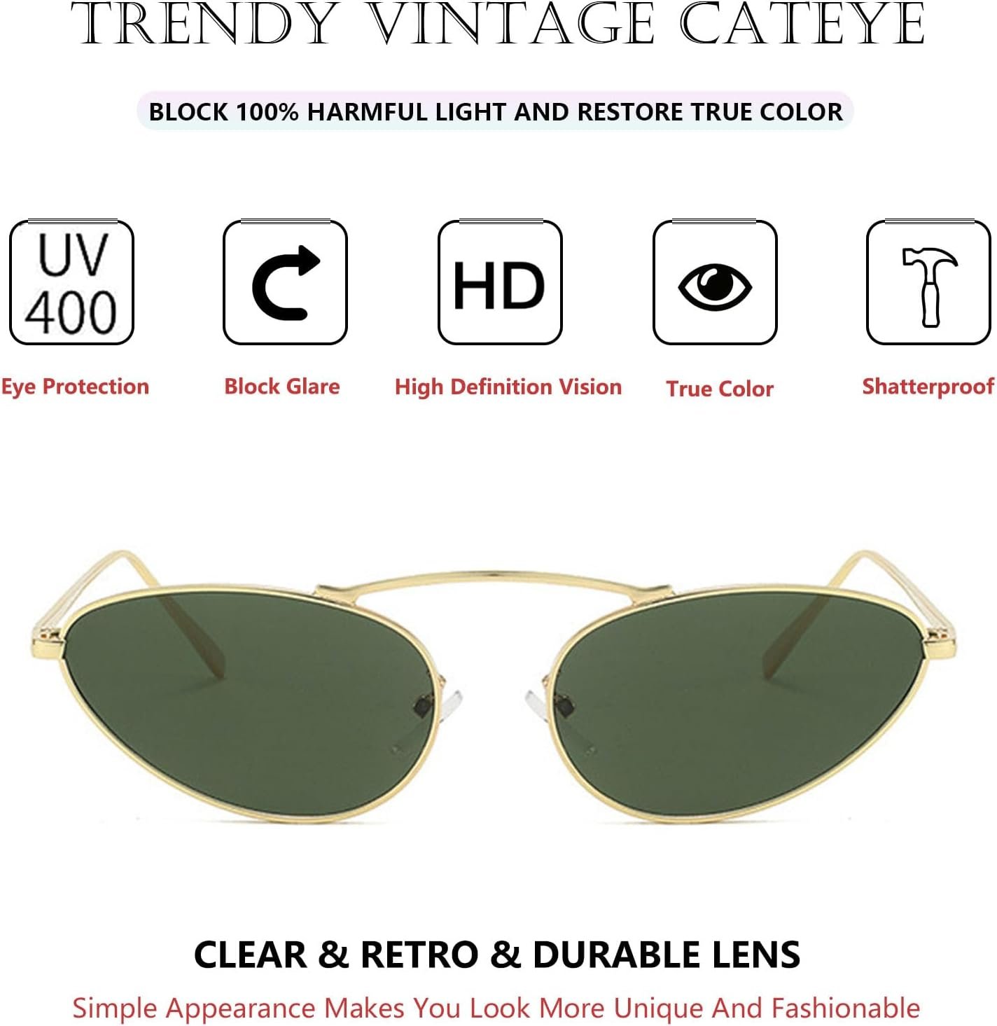 Be the first to review “Fashion Retro Narrow Cat Eye Sunglasses for Women Trendy Fun Small Metal Frame Sunnies UV400 Protection Glasses” Cancel reply