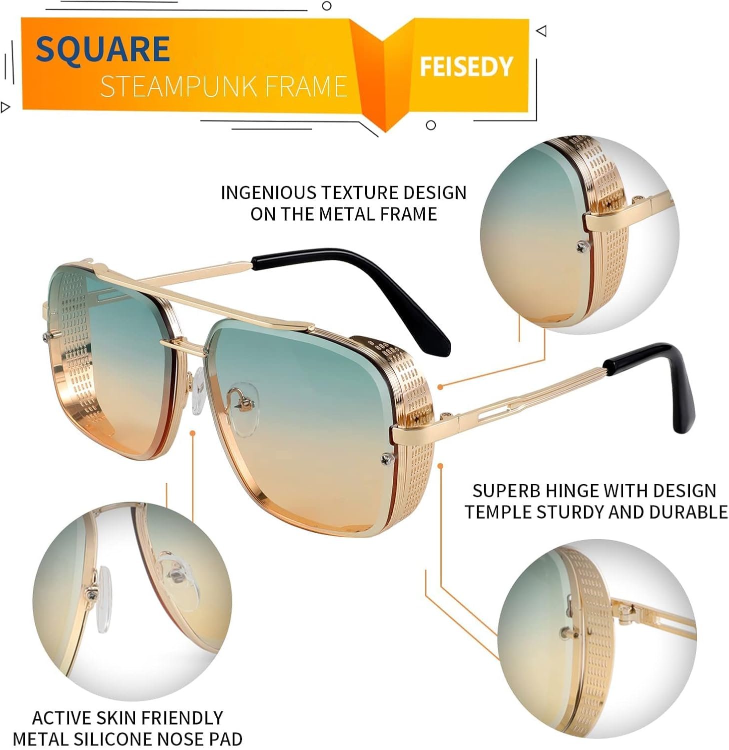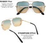 FEISEDY Sunglasses Mens Women Vintage Pilot Square Trendy Metal Steampunk Fishing Driving Sun Glasses B2894