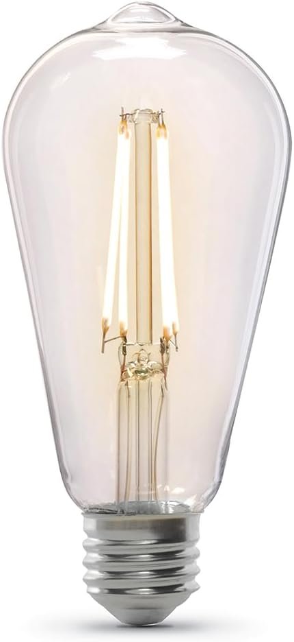 CLASSIC VINTAGE ORIGINAL DESIGN – Add a touch of elegance to your home with the Feit Electric ST19 Vintage Edison LED Light Bulb. This 60W equivalent bulb combines a nostalgic, industrial design with energy-efficient LED technology, featuring a beautiful, straight filament encased in clear glass, creating a charming ambiance for your indoor spaces. Perfect for open fixtures, chandeliers, and pendant lights to achieve an old-world aesthetic without sacrificing efficiency.