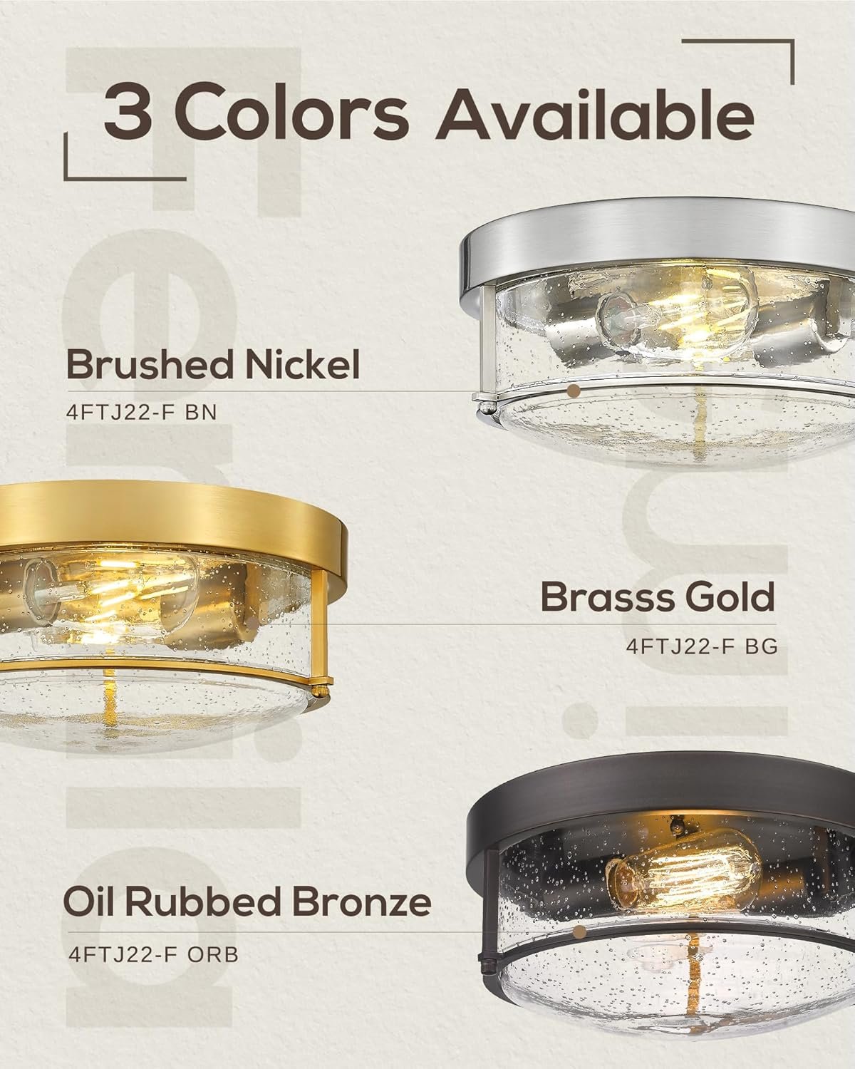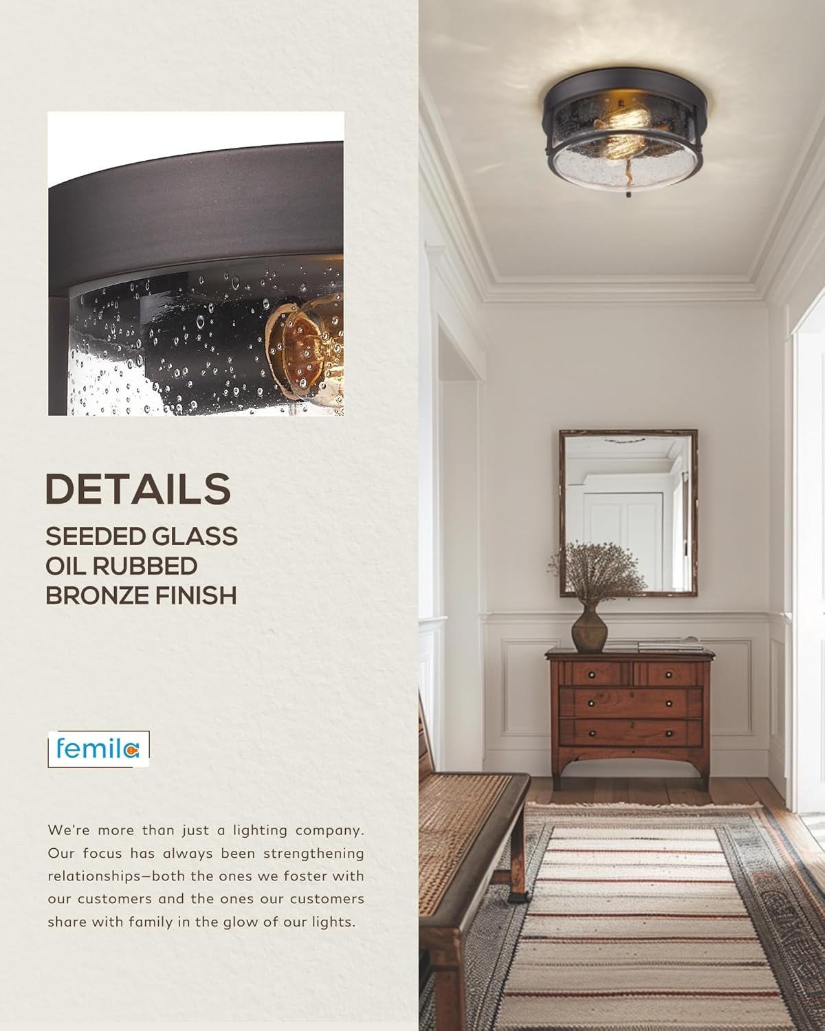 FEMILA Flush Mount Lighting Fixture, 12inch 2-Light Metal Ceiling Light Fixtures, Oil Rubbed Bronze Finish with Seeded Glass, 4FTJ22-F ORB