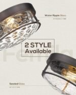 【Industrial Design】The flush mount features metal frame in oil rubbed bronze finish, seeded glass lamp shade, with attractive farmhouse style, beautiful and durable.
