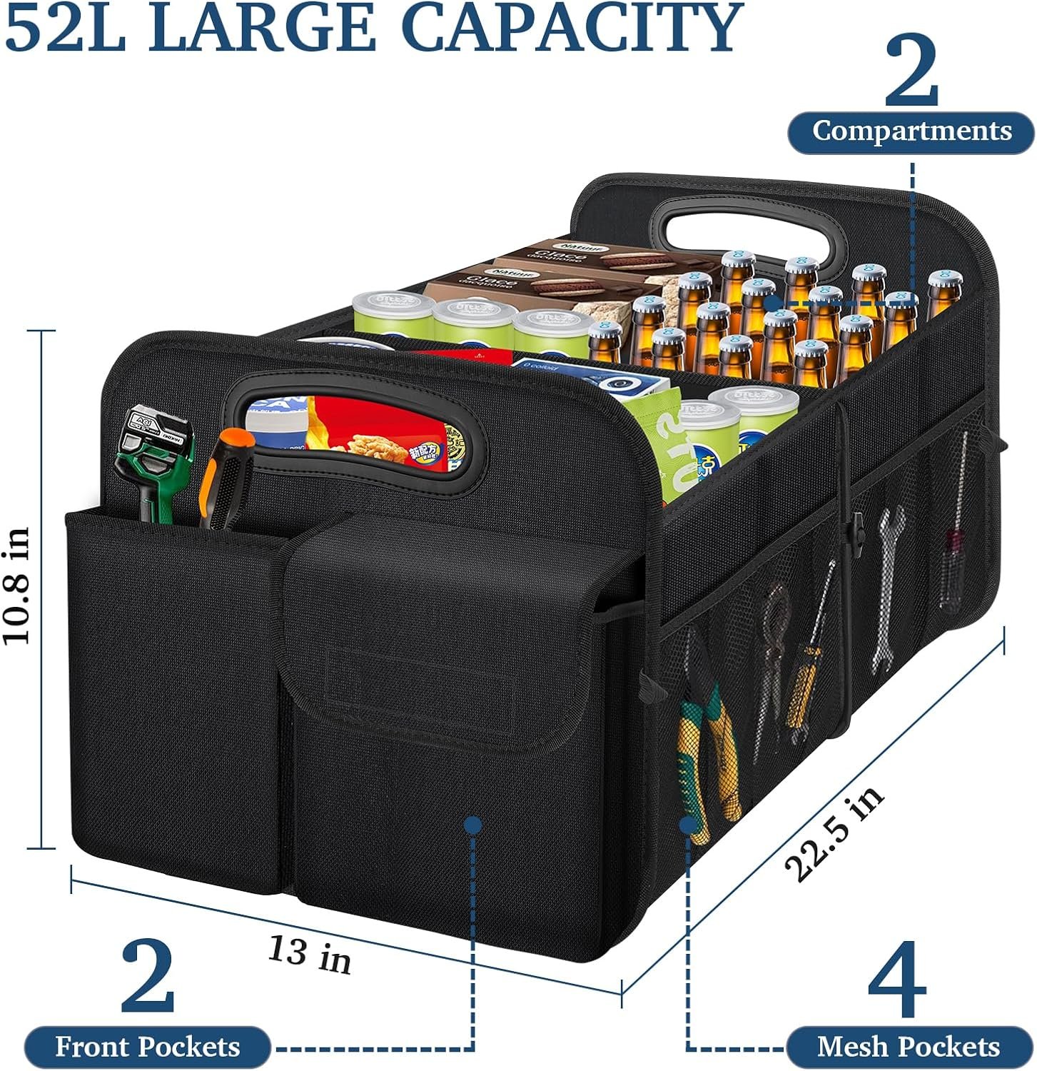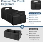 Femuar car trunk organizer great for road trips and family vacations. It is perfect for storing groceries, tools, sports gear, and more.