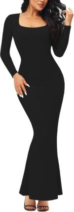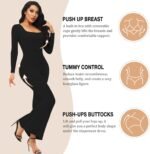 Fengbay Shapewear Dress for Women Bodycon Dress with Built in Shapewear Shaper Dress Square Neck Lounge Long Dress