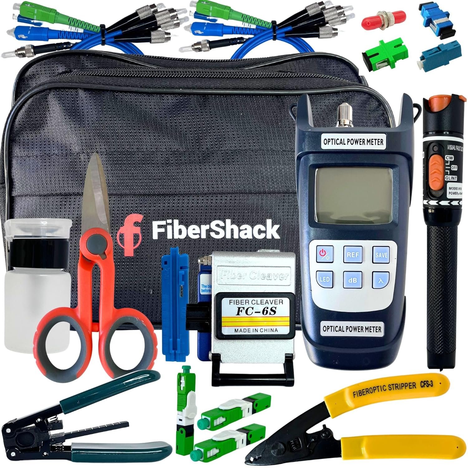 Fiber Professionals. Every installation needs to have flawless fiber, from signal origin to termination. And if not, the end result will be inefficiency and frustration. FiberShack delivers Live Cable feeds to some of the largest racetracks and sporting venues across America, where mission critical performance is essential to our business. Some Fibre optic products don’t always perform out of the box, they’re often generic or need to be tuned and calibrated. Our products come Pre-tested to make sure you’ll never experience signal loss. Our Fiber optic Toolkit solves any problem you experience trying to keep your Fiber flowing. We supply Premium quality products at a business friendly price – Ideal whether you’re installing Fiber to the Home, Business or industrial use, our Fiber helps your business stay successful and profitable. Every item is inspected for quality and used daily on our own Fiber sites across the USA. We use what we sell, and we 100% support our customers in making the best equipment decisions for your business. 12-In-1 Fiber Test & Tool Kit Contains: Optical Power Meter with 10km VFL & FC/SC Adapter (batteries not Included). 10km Swivel Top Visual Fault Locator (batteries not Included). 4 each x FC & ST to SC/APC, FC/ST, LC, SC Armored patch cables for Cable testing the most common cable genders. Fiber Optic 3 Core Stripping Tool, Fiber Optic Kevlar Scissors. 2mm indoor fiber optic stripping tool. High-quality FC-6S Fiber Cleaver & cutting knife for FTTH cold welding for single or multi-mode core cutting for fiber size 125um; skin diameter 250~900um. Also Included – FC-6S Fiber Cleaver. CLAUSS Fiber Optic Striping tool. Durable Black Nylon Carry Bag with Sling and Carabiner, 50 x clean paper wipes, Alcohol bottle (liquid NOT included), 2 x Fixed length rails, 10x SC/APC Quick Connectors, 4x Fiber Optic Couplers for (SC/APC, LCUPC, SCUPC, STUPC). ENGLISH Instructions Included kit de fibra optica para fiber optic splicing tools – kit fibra optica